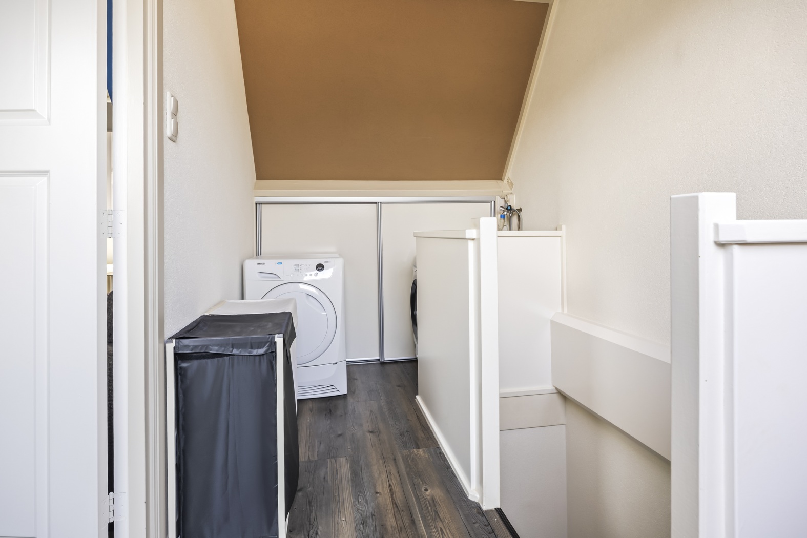 •2e verdieping: voorzolder met wasmachine aansluiting, mooi afgewerkte bergruimten en een grote 4e zolderslaapkamer met kunststof dakkapel en extra velux dakraam, eventueel te splitsen in 5e slaapkamer