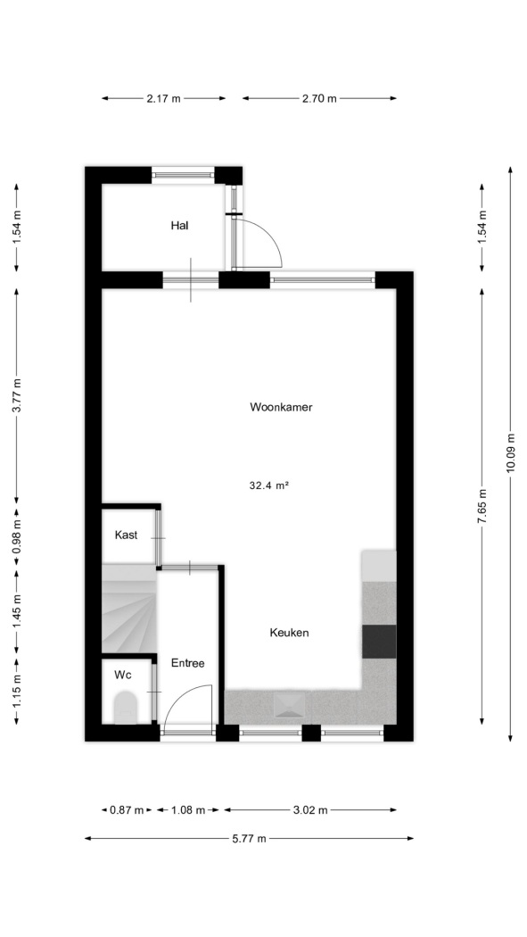 Bij binnenkomst in de woning word je ontvangen in een nette entree, die toegang biedt tot de lichte woonkamer, de trapopgang en de toiletruimte. Het toilet is volledig betegeld en uitgevoerd in een moderne stijl met een frisse, tijdloze uitstraling. Hierdoor oogt de ruimte verzorgd en praktisch in gebruik.