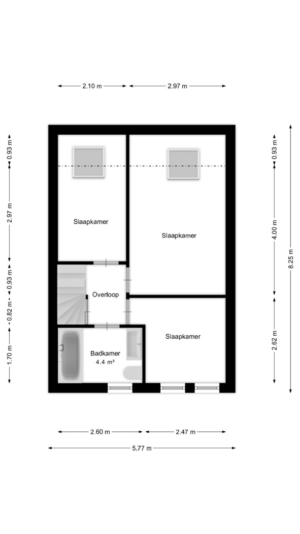 Op de eerste verdieping vind je drie goed bemeten slaapkamers. Aan de voorzijde ligt een fijne kamer met een charmant Frans balkon, terwijl de twee slaapkamers aan de achterzijde zijn voorzien van dakramen die voor extra licht zorgen. Alle kamers zijn afgewerkt met een nette pvc vloer, wat zorgt voor een rustige en moderne uitstraling.