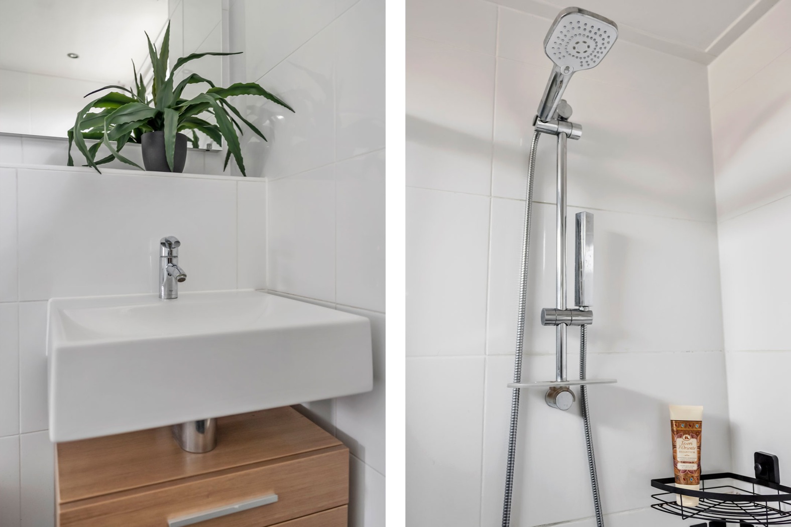 De moderne, volledig betegelde badkamer is stijlvol ingericht en voorzien van een kwartronde douchecabine, wastafelmeubel, een hoge badkamerkast, een tweede toilet en een designradiator. Een fijne, complete ruimte om de dag ontspannen te beginnen of juist af te sluiten.