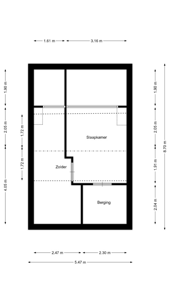 •Tweede verdieping: voorzolder met wasruimte en berging