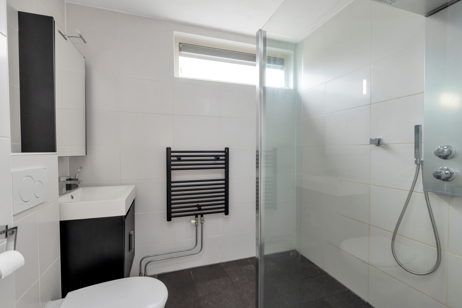•Fijne badkamer met douchecabine, wastafel, 2e toilet en designradiator