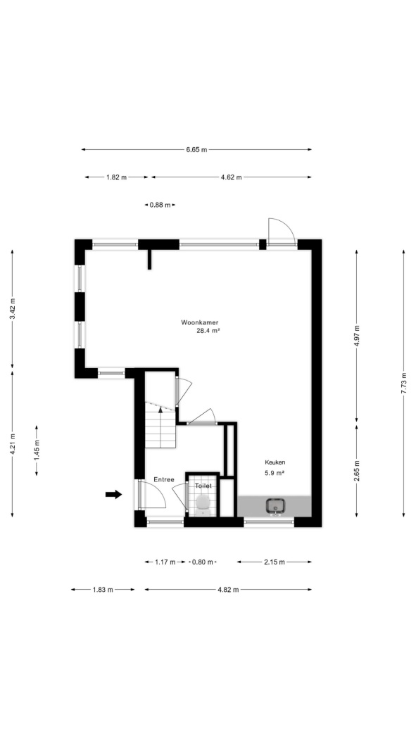 •Woonkamer van maar liefst 6,65 meter breed met erker en veel lichtinval