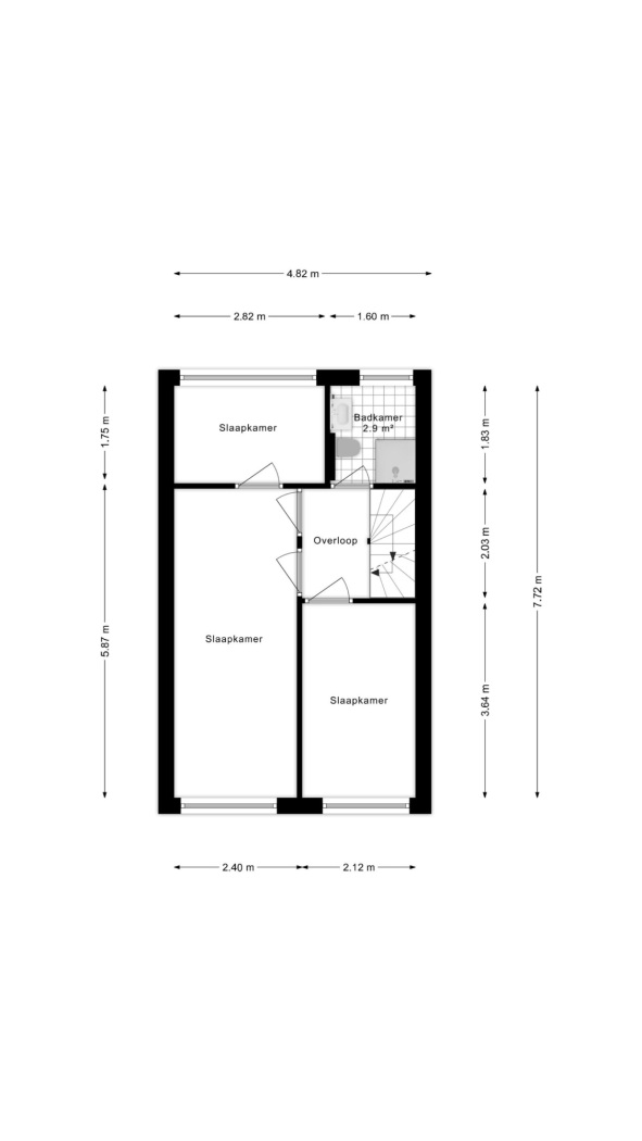 Boven: vijf (!) slaapkamers, verdeeld over twee verdiepingen. Ruimte voor kinderen, een thuiswerkplek, logeerkamer, hobbyruimte… of gewoon een walk-in closet. De badkamer is netjes en compleet met douchecabine, tweede toilet, wastafelmeubel en designradiator.