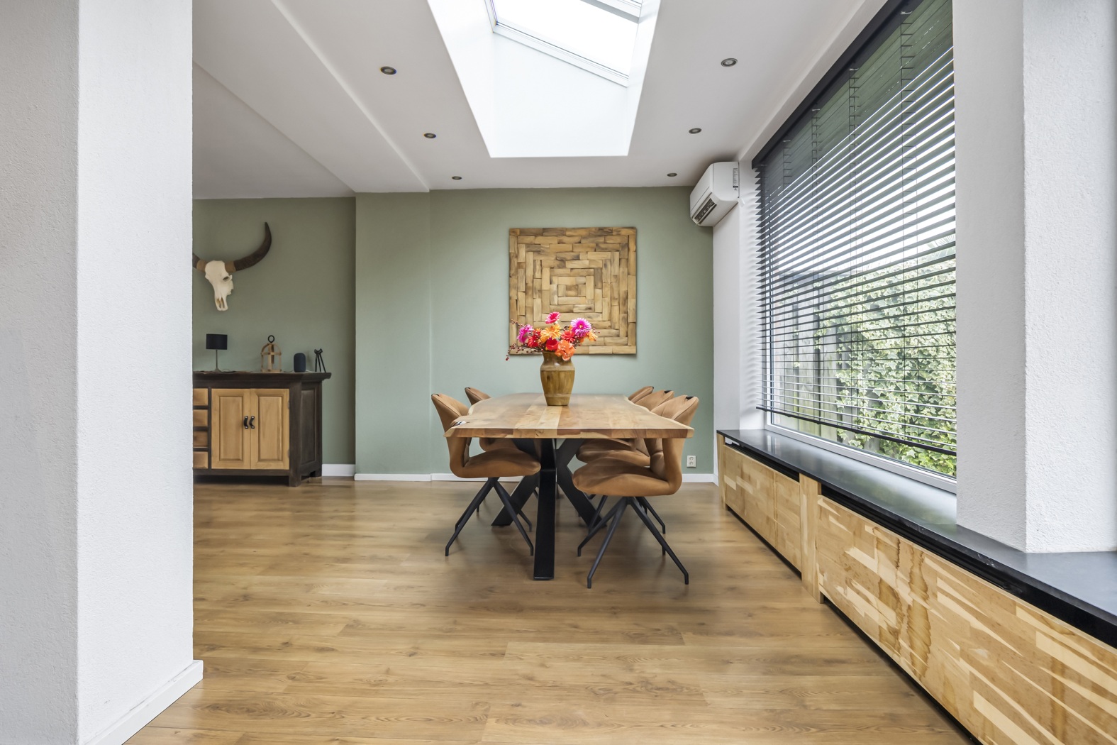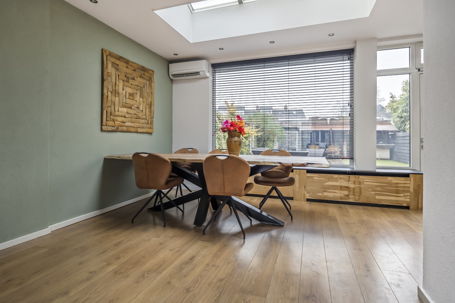 De woning is aan de achterzijde uitgebouwd met maar liefst 3 meter. Dankzij de geplaatste lichtstraat in het dak voelt de leefruimte extra open en licht aan. De woonkamer biedt meer dan voldoende ruimte voor een royale zithoek en een grote eethoek waar je gezellig samenkomt met familie en vrienden. De open keuken vormt een mooi verlengstuk van de woonkamer en is uitgerust met alle benodigde inbouwapparatuur: praktisch én stijlvol geïntegreerd in het geheel.