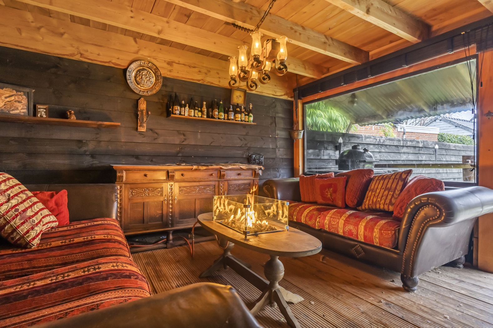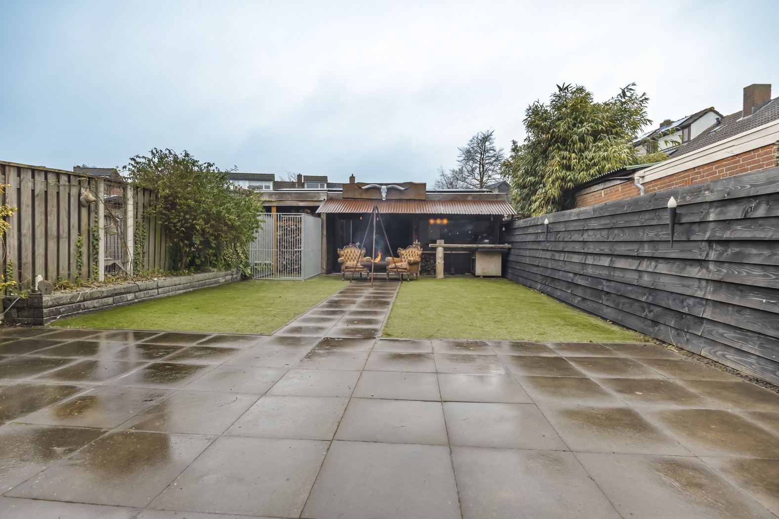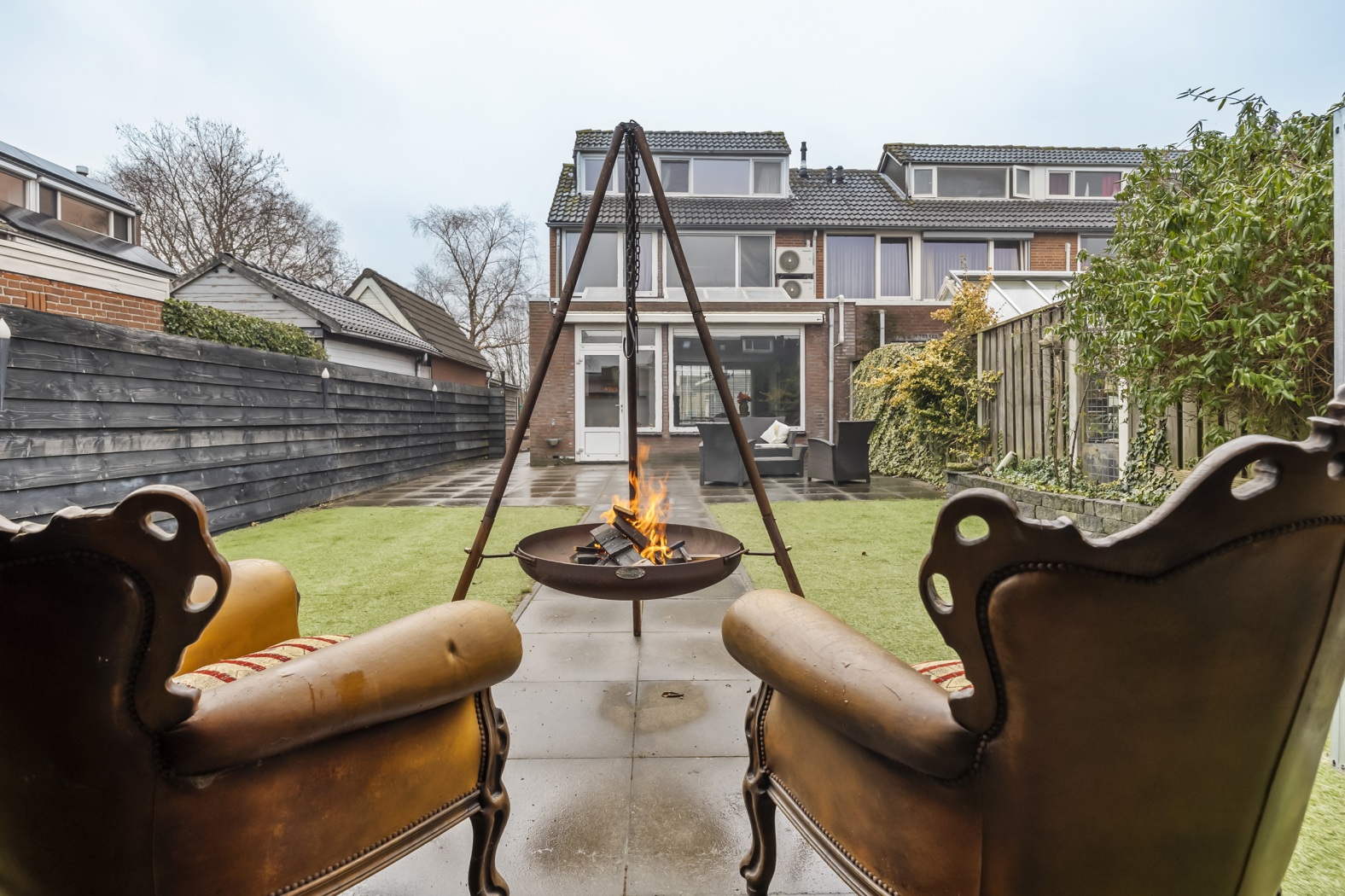 De achtertuin is ruim opgezet en biedt volop mogelijkheden om te genieten van het buitenleven. Achterin de tuin vind je een royale overkapping, perfect voor lange zomeravonden of juist beschut zitten in het voor- en najaar. Daarnaast is er een extra berging aanwezig voor fietsen en tuingereedschap.