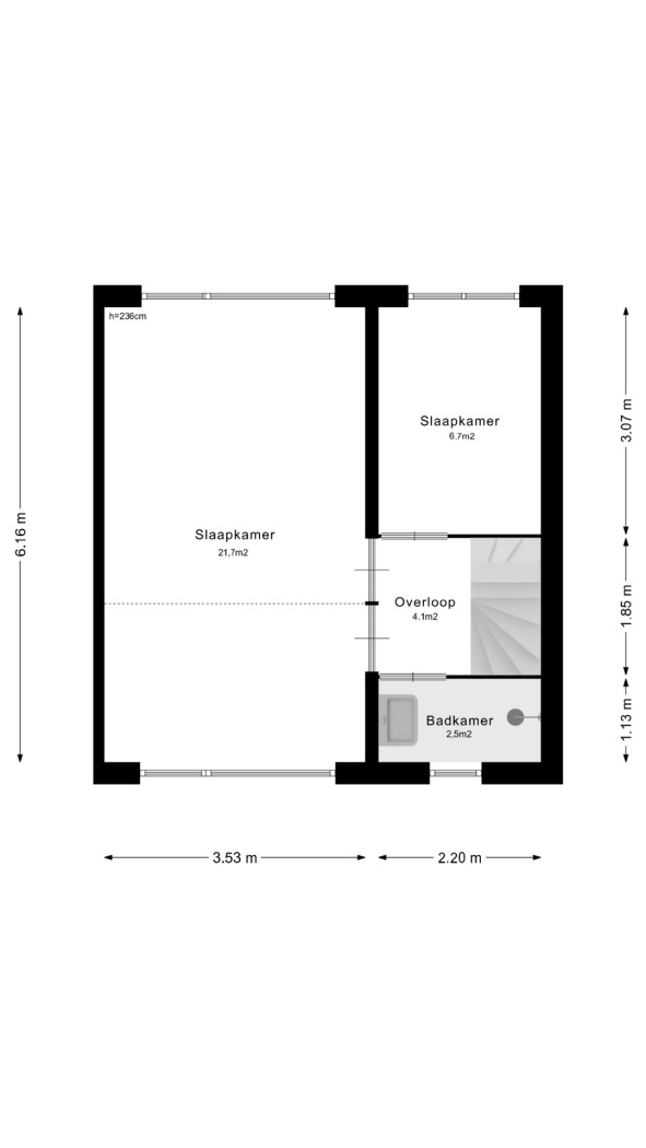De tweede verdieping biedt nog een extra (slaap)kamer. Dankzij de dakkapellen aan beide zijden is dit een verrassend ruime en lichte verdieping, ideaal als extra slaapkamer, thuiskantoor of hobbyruimte. Tevens bevindt zich hier de aansluiting voor de wasmachine, wat deze verdieping extra praktisch maakt.