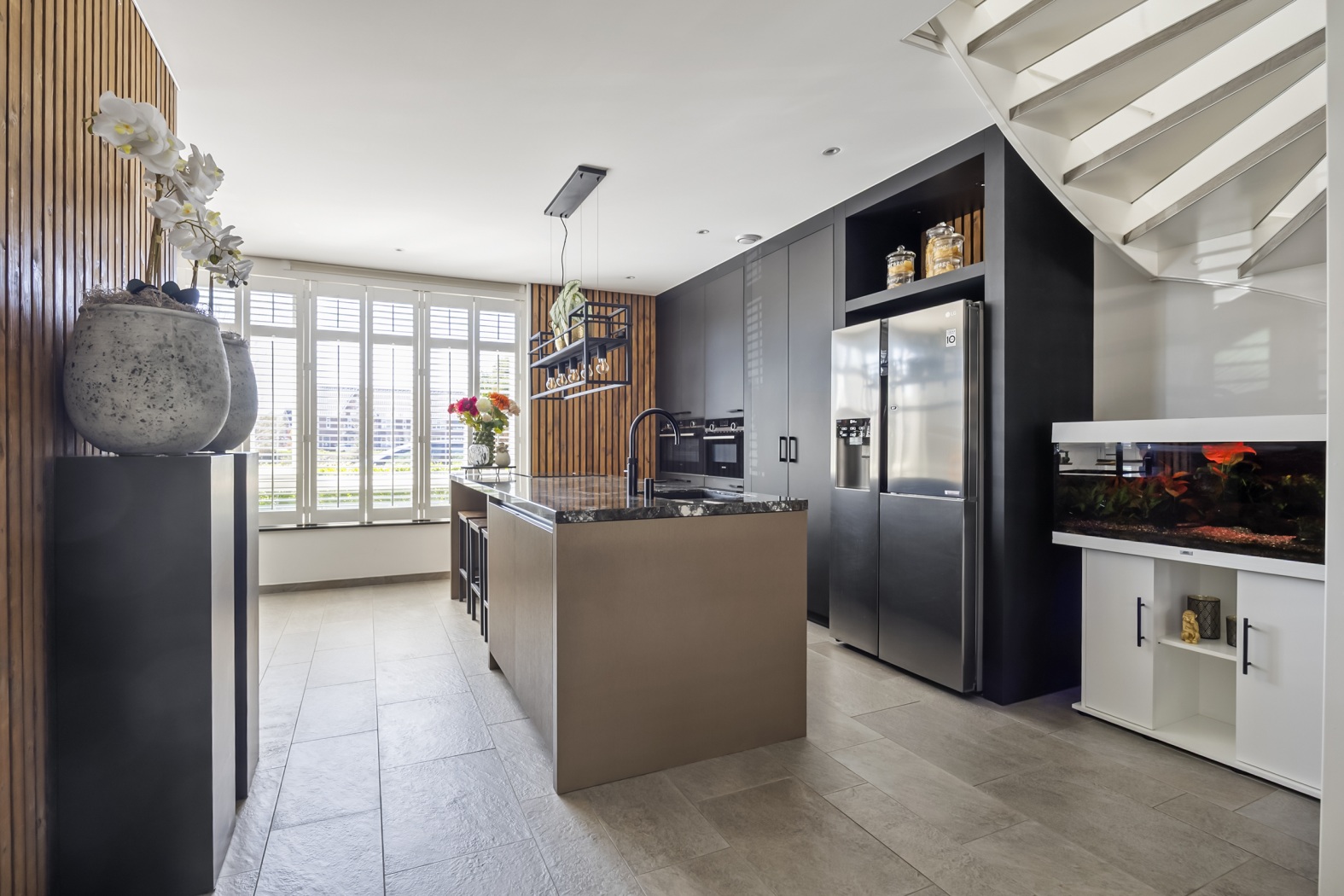 Je komt binnen in een lichte en royale woonkamer, waar grote raampartijen zorgen voor een prettige sfeer en veel daglicht. Er is volop ruimte voor een comfortabele zithoek en een gezellige eettafel. Het woongedeelte loopt naadloos over in de open woonkeuken, die in 2023 volledig is vernieuwd. Deze moderne en strak afgewerkte keuken is van alle gemakken voorzien en beschikt over een stijlvol kook- en spoeleiland. Daarnaast is er nog ruimte voor een extra eethoek, wat deze ruimte ideaal maakt voor lange avonden tafelen met familie en vrienden.