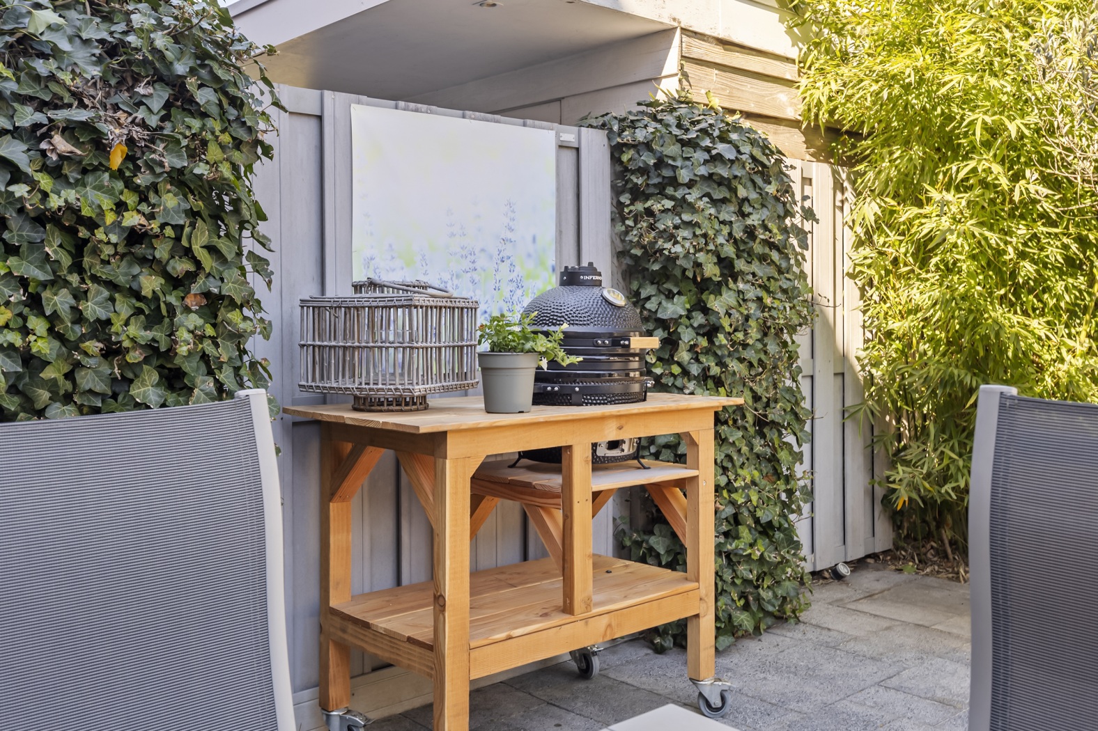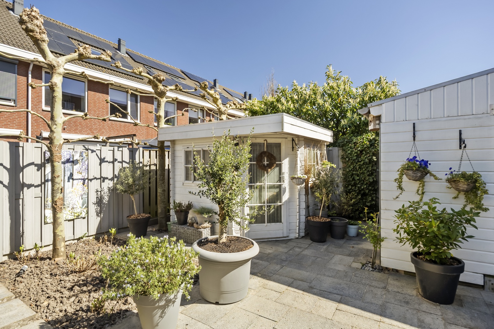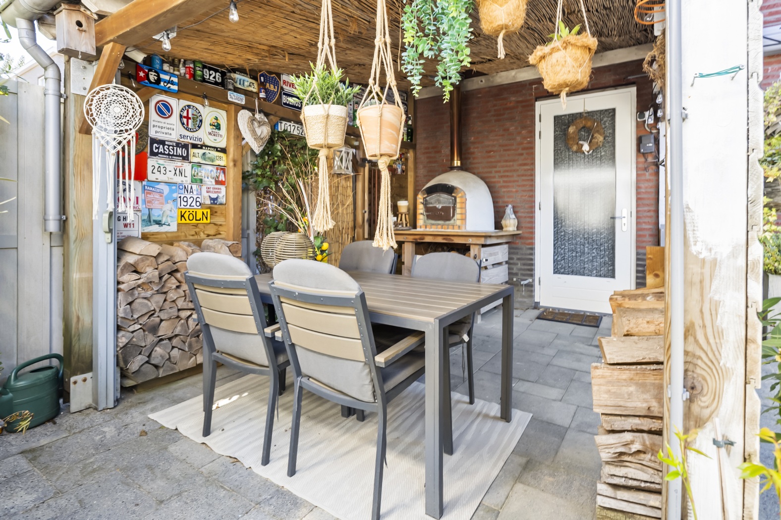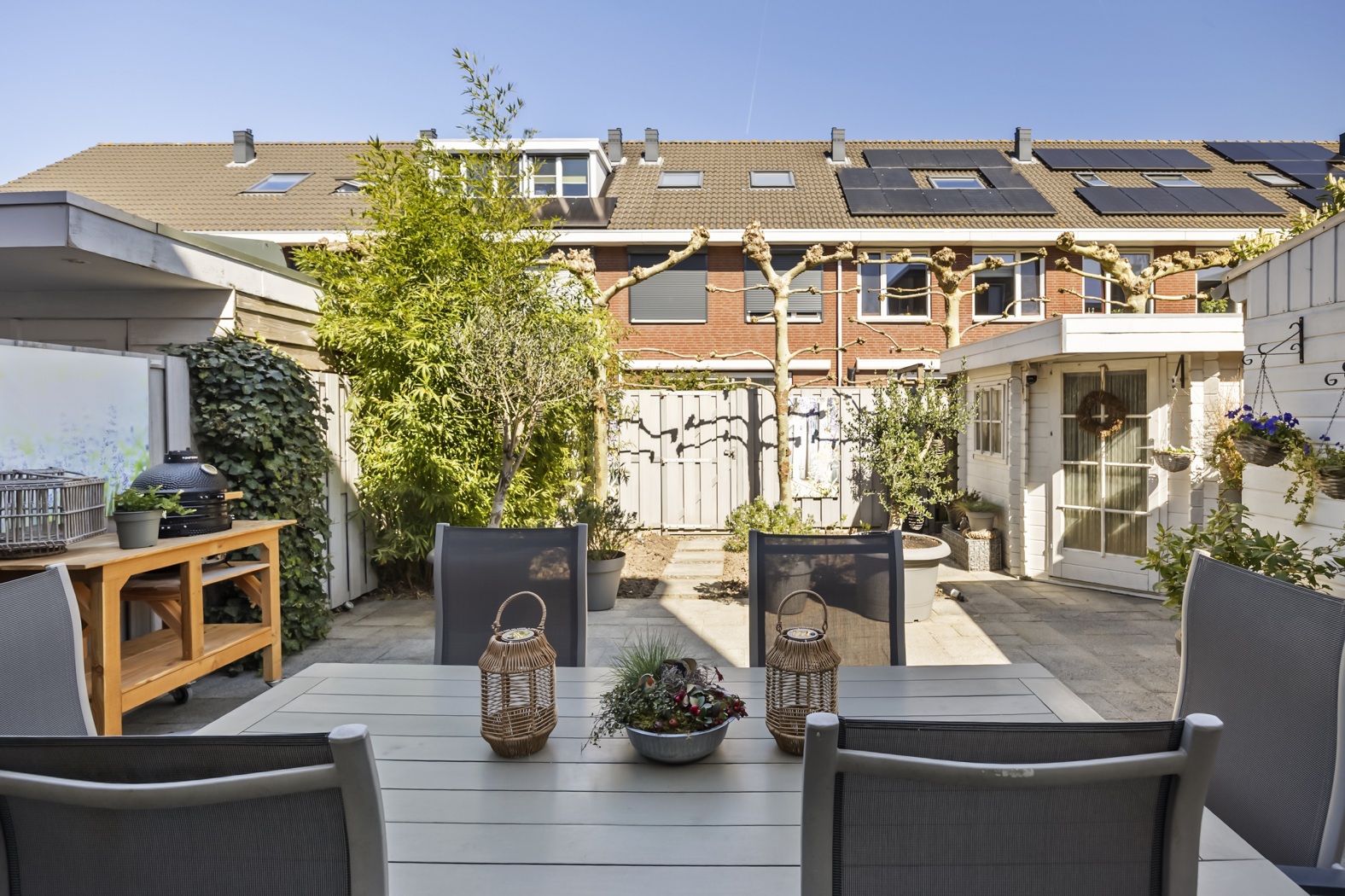 De achtertuin is ruim opgezet en keurig onderhouden. Hier vind je meerdere plekken om te ontspannen, van een gezellige loungehoek tot een fijne plek om buiten te eten en zelfs nog een overkapping waardoor je tijdens alle seizoenen gebruik kan maken van de buitenruimte. Achterin de tuin staat nog een extra houten berging, perfect voor het opbergen van tuingereedschap of in te richten als hobbyruimte.