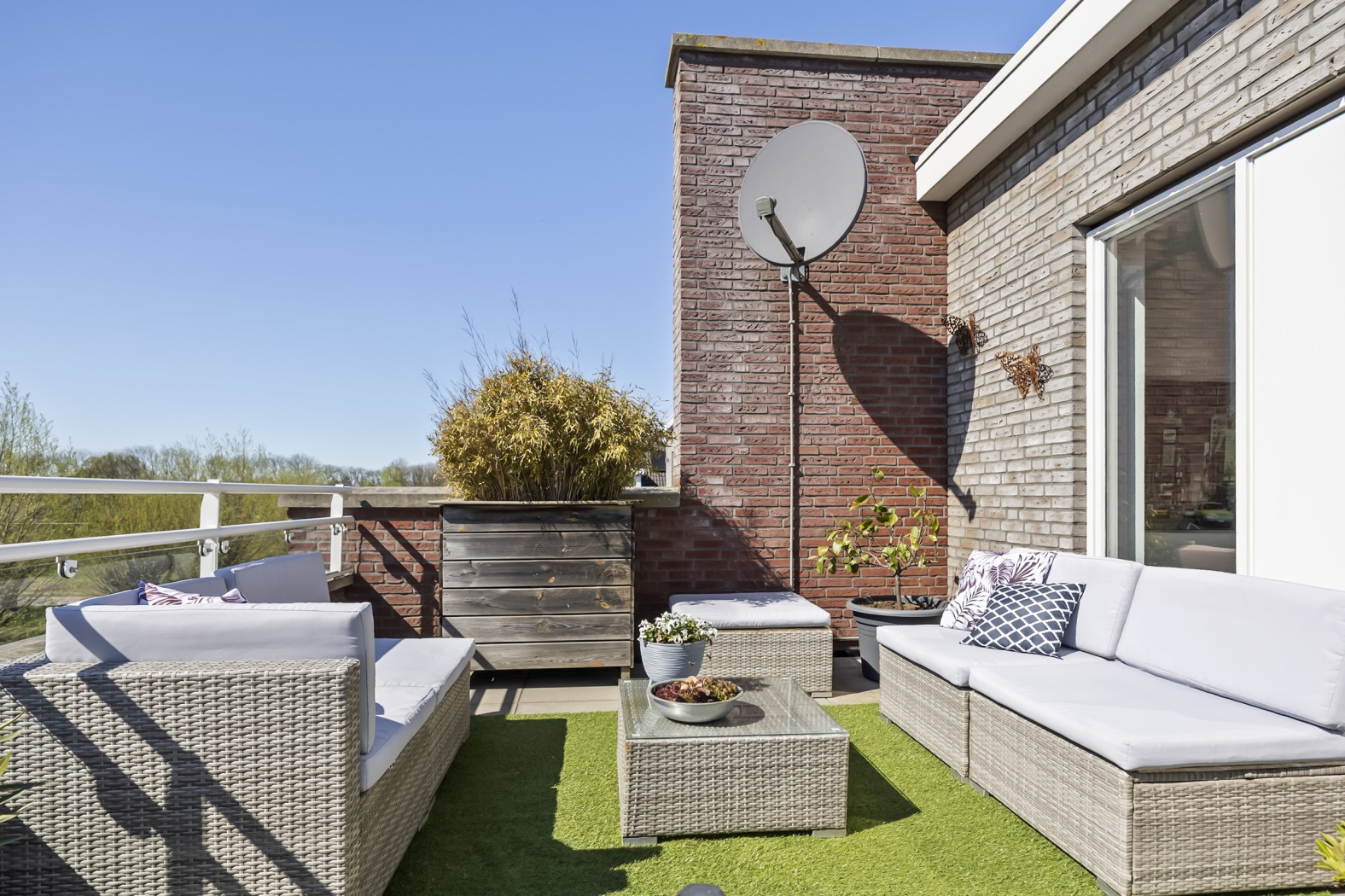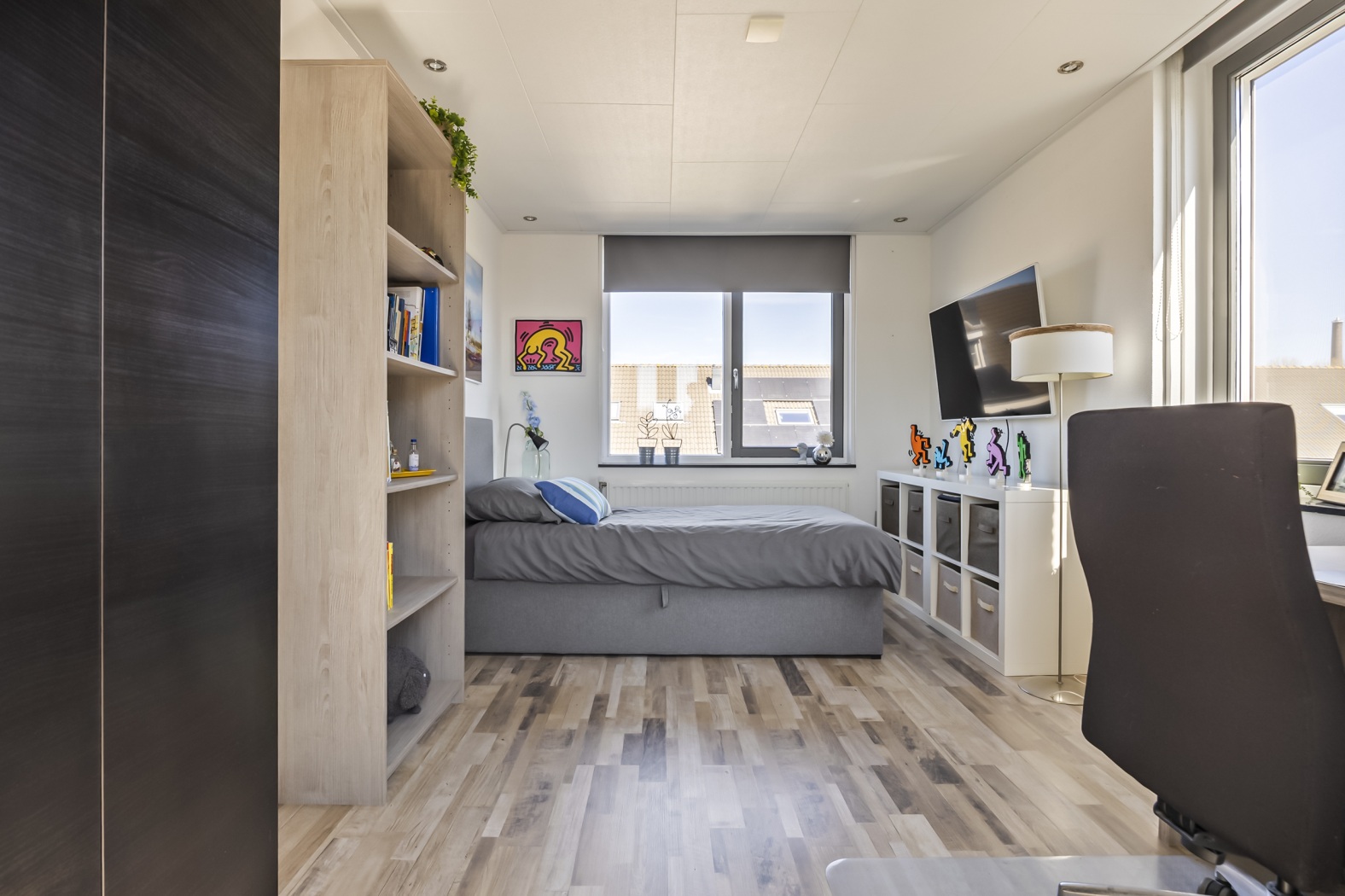 De tweede verdieping beschikt over een ruime overloop met een separate wasruimte, wat zorgt voor extra praktisch gebruiksgemak. Daarnaast vind je hier nog een extra slaapkamer, ideaal als slaap-, werk- of hobbyruimte. Vanuit deze verdieping heb je toegang tot het zonnige dakterras van ca. 3,73 meter diep, waar je in alle rust kunt genieten van de zon en het prachtige uitzicht over het water.