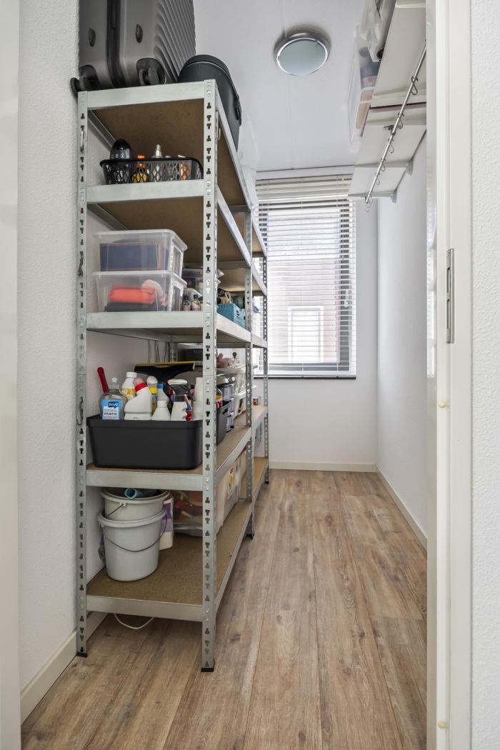 Grenzend aan de woning bevindt zich de garage met berging, ideaal voor extra opslag en het stallen van fietsen. Parkeren kan gemakkelijk op de eigen oprit naast de woning of openbaar in de straat.