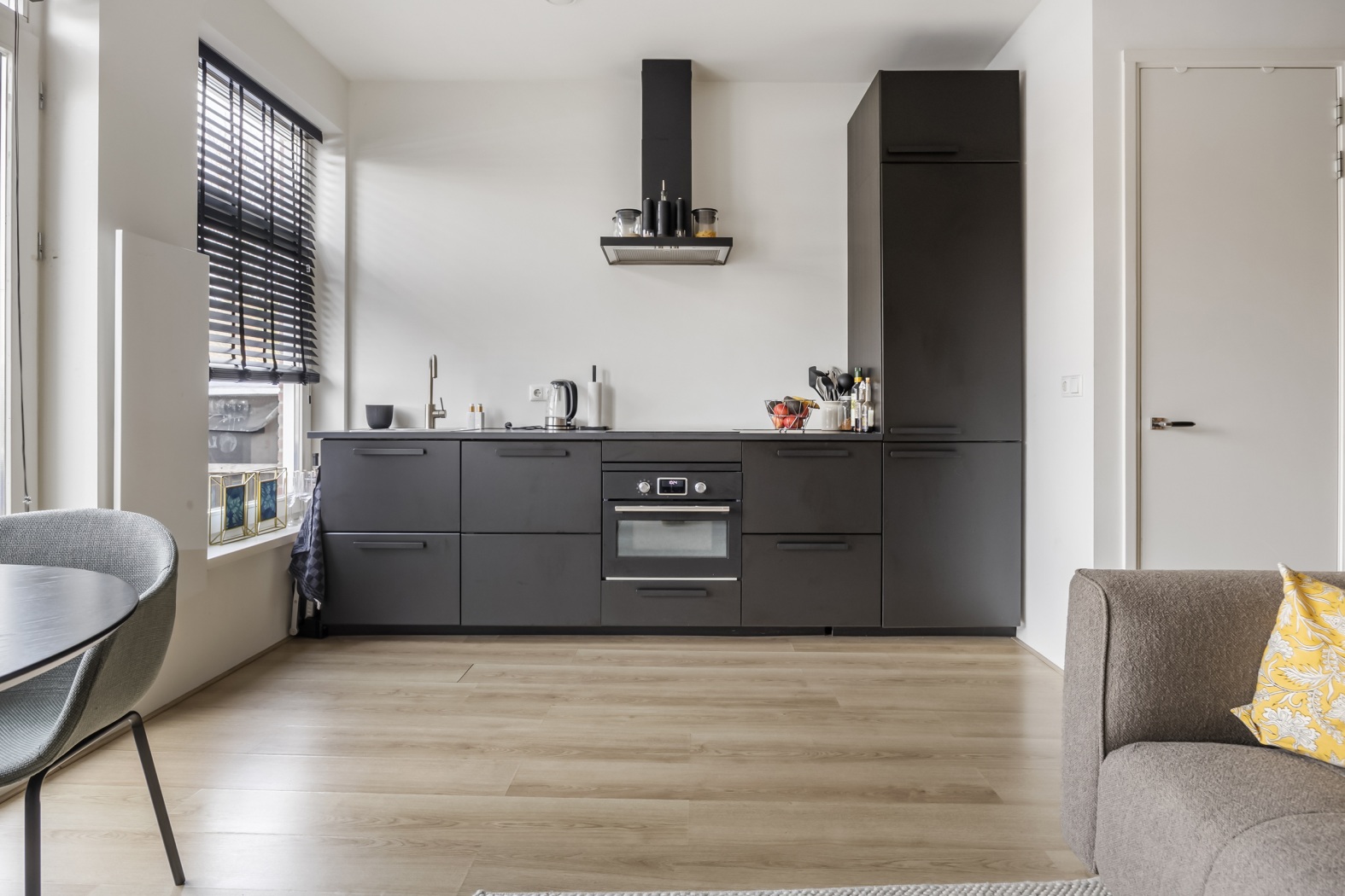 Indeling & wooncomfort?Het appartement beschikt over een lichte woonkamer met een open keuken, waar wonen en koken naadloos in elkaar overlopen. Dankzij de openslaande deuren naar het balkon voelt de leefruimte extra ruim en licht aan. Het balkon vormt een fijne plek om ’s ochtends rustig wakker te worden met een kop koffie of aan het einde van de dag even buiten te zitten.