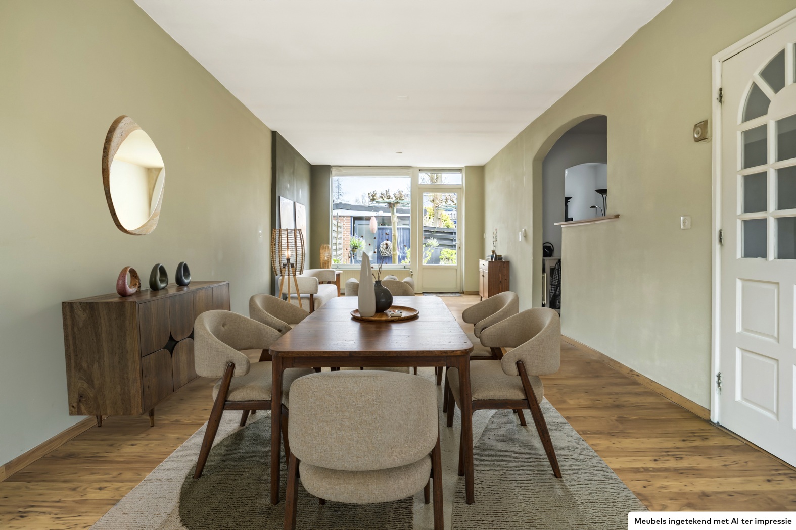 Bij binnenkomst valt direct de lichte en ruime opzet van de begane grond op. Dankzij de grote raampartijen aan beide zijden geniet de woonkamer van een prettige hoeveelheid daglicht. De royale leefruimte biedt alle mogelijkheden voor het creëren van een comfortabele zithoek en een gezellige eethoek.