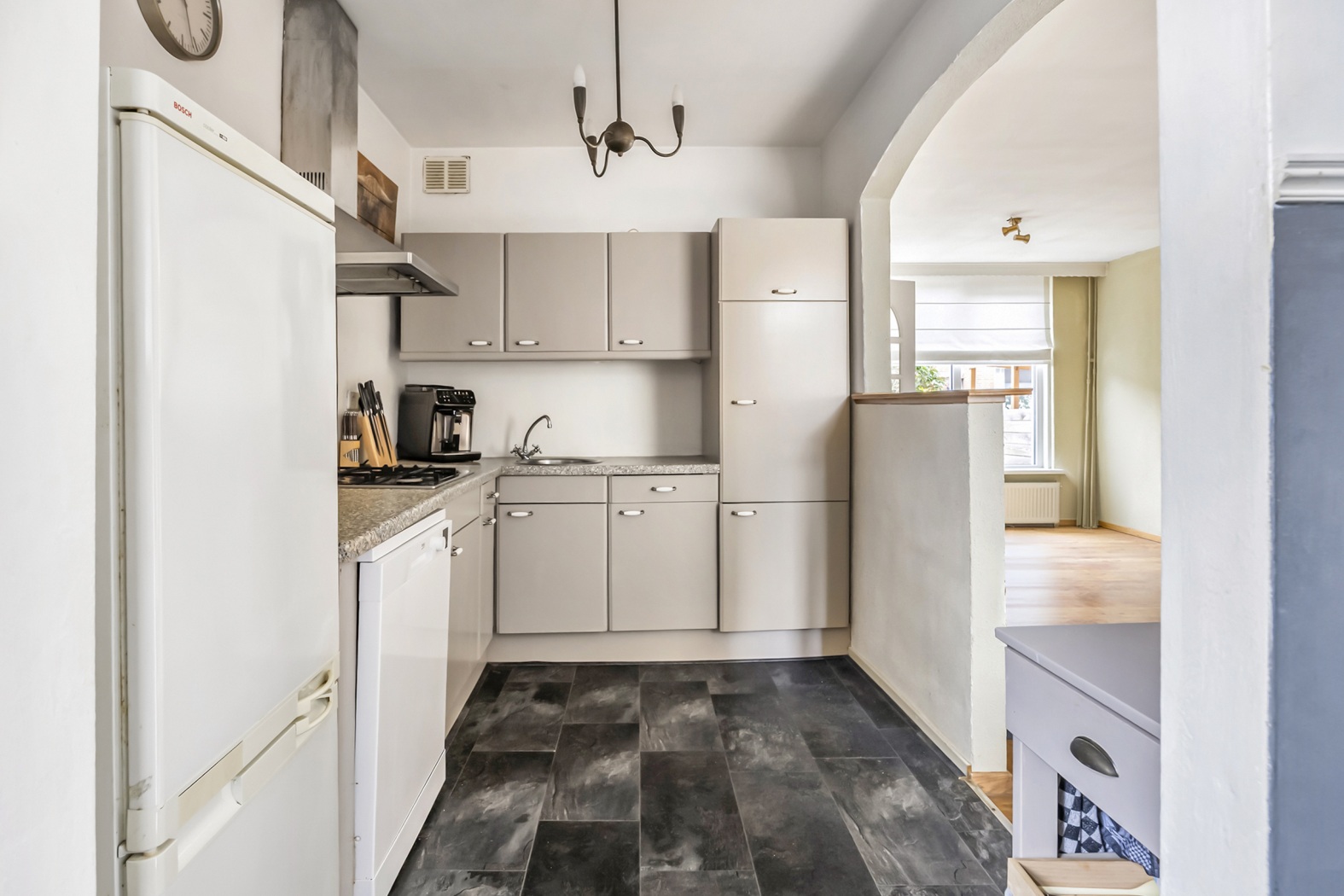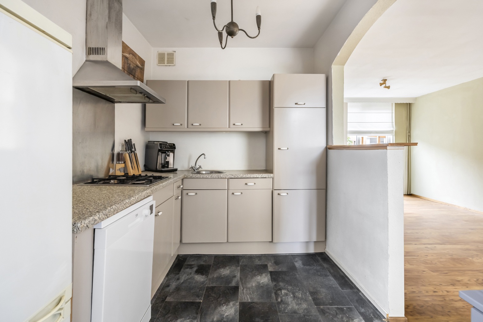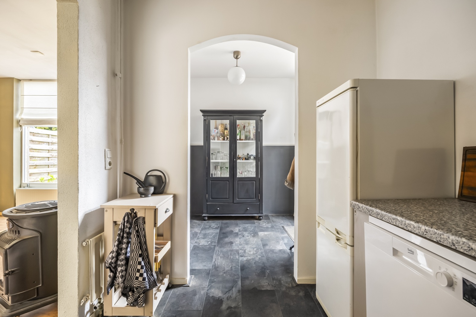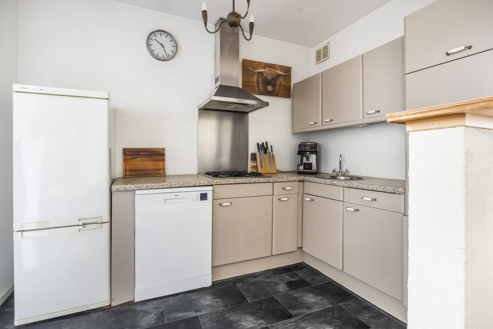 De halfopen keuken sluit aan op de woonkamer en is functioneel ingericht. Hoewel de keuken wat gedateerd is, is de inbouwapparatuur vernieuwd in 2015 en nog in goede staat. Vanuit de keuken bereik je de praktische bijkeuken, die tevens toegang biedt tot de achtertuin.
