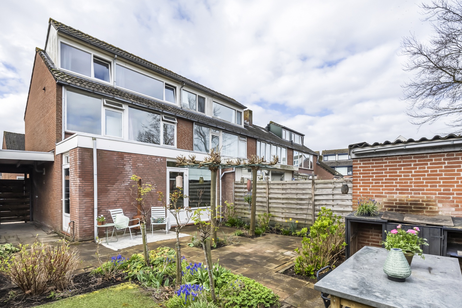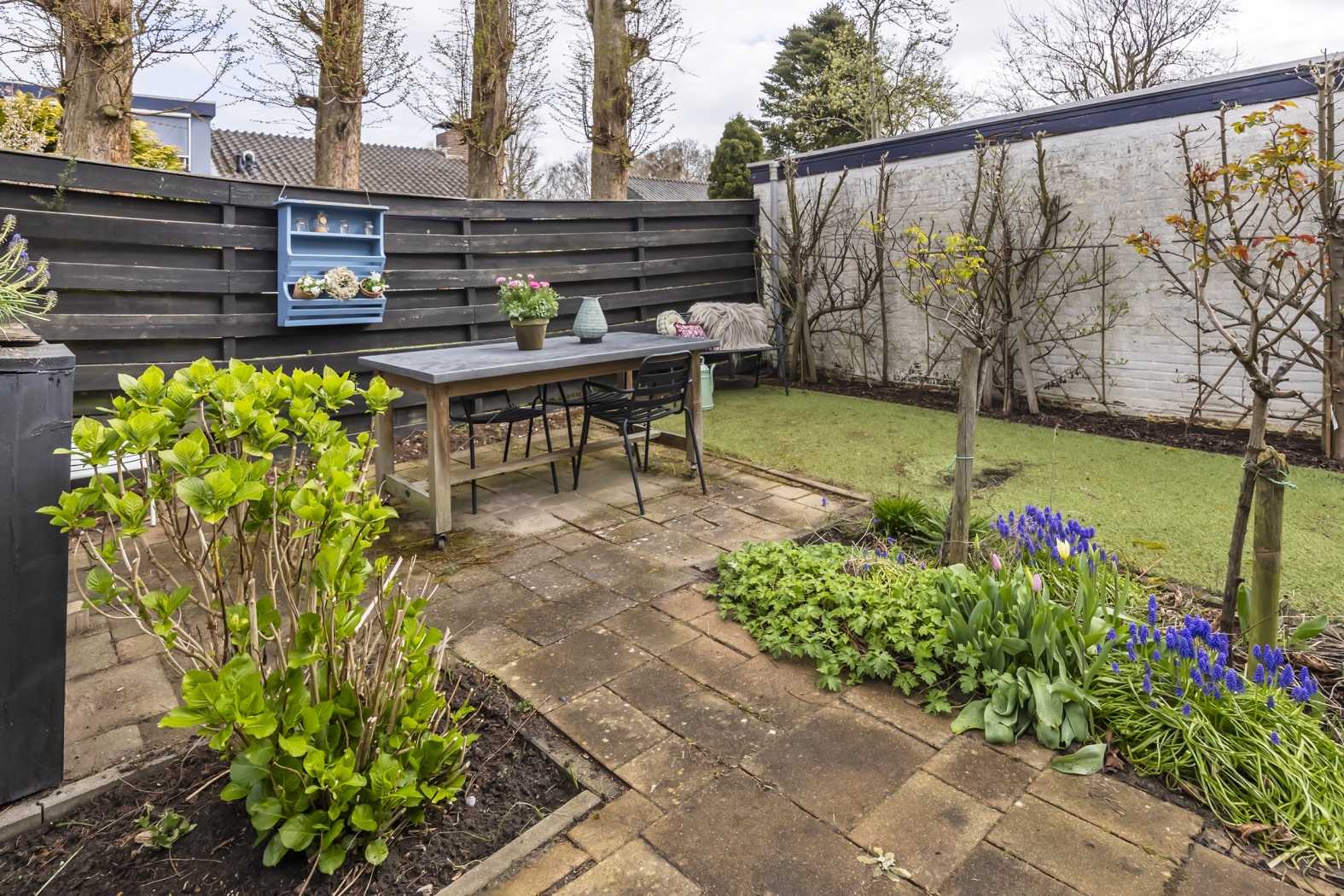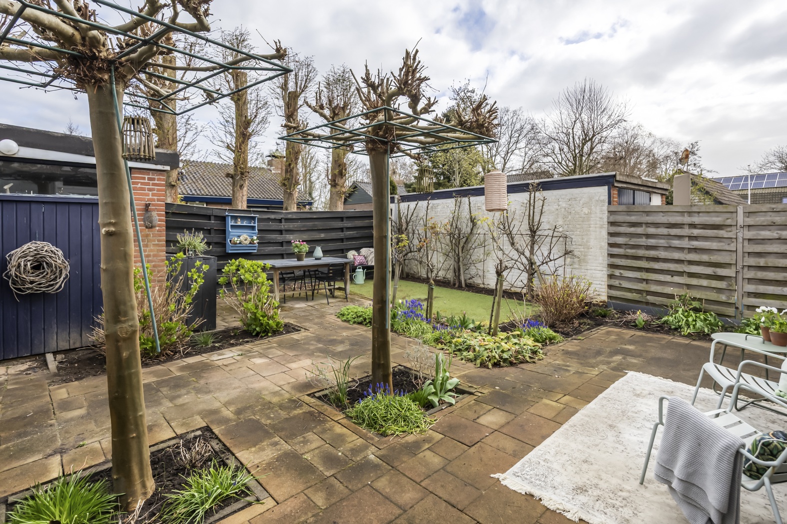 De achtertuin is een echte eyecatcher van deze woning. De combinatie van groen en bestrating zorgt voor een fijne balans tussen sfeer en gebruiksgemak. Hier vind je volop ruimte voor een loungeplek of eettafel om heerlijk buiten te genieten. Achterin de tuin staat een stenen berging, ideaal voor fietsen en tuinspullen, en dankzij de achterom is de tuin ook praktisch in gebruik. Parkeren doe je eenvoudig op de eigen oprit naast de woning.