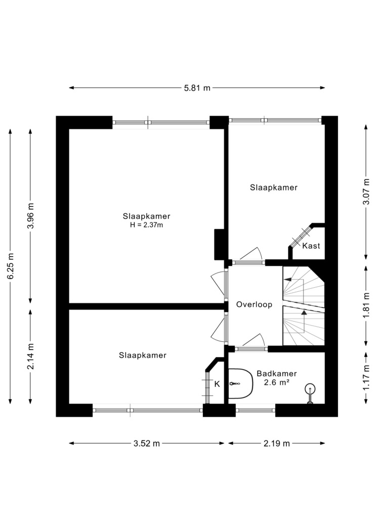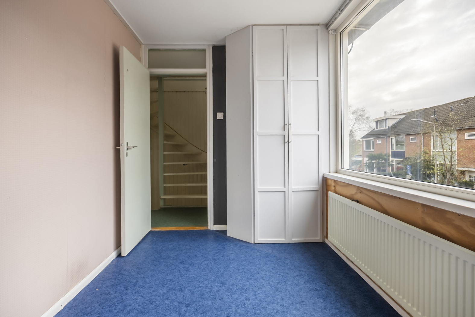 Op de eerste verdieping bevinden zich drie slaapkamers van goed formaat. De grote ramen zorgen niet alleen voor veel lichtinval, maar ook voor natuurlijke ventilatie. De badkamer is gedateerd, maar compleet ingericht met een douche en wastafelmeubel.