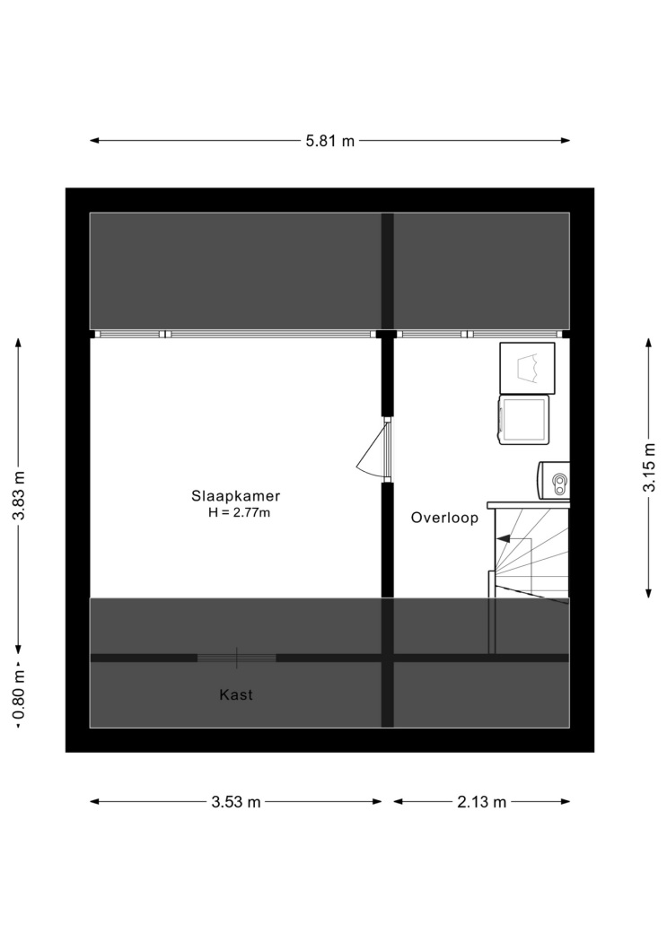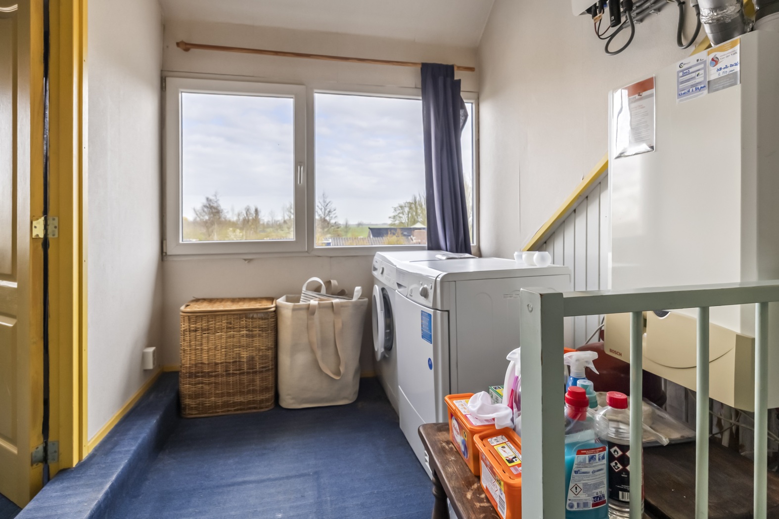 De tweede verdieping biedt nog eens extra ruimte met een ruime overloop voorzien van aansluitingen voor wasmachine en droger. Daarnaast vind je hier een vierde slaapkamer, die ook perfect kan dienen als werk- of hobbyruimte. Ook aan bergruimte is op deze verdieping geen gebrek.