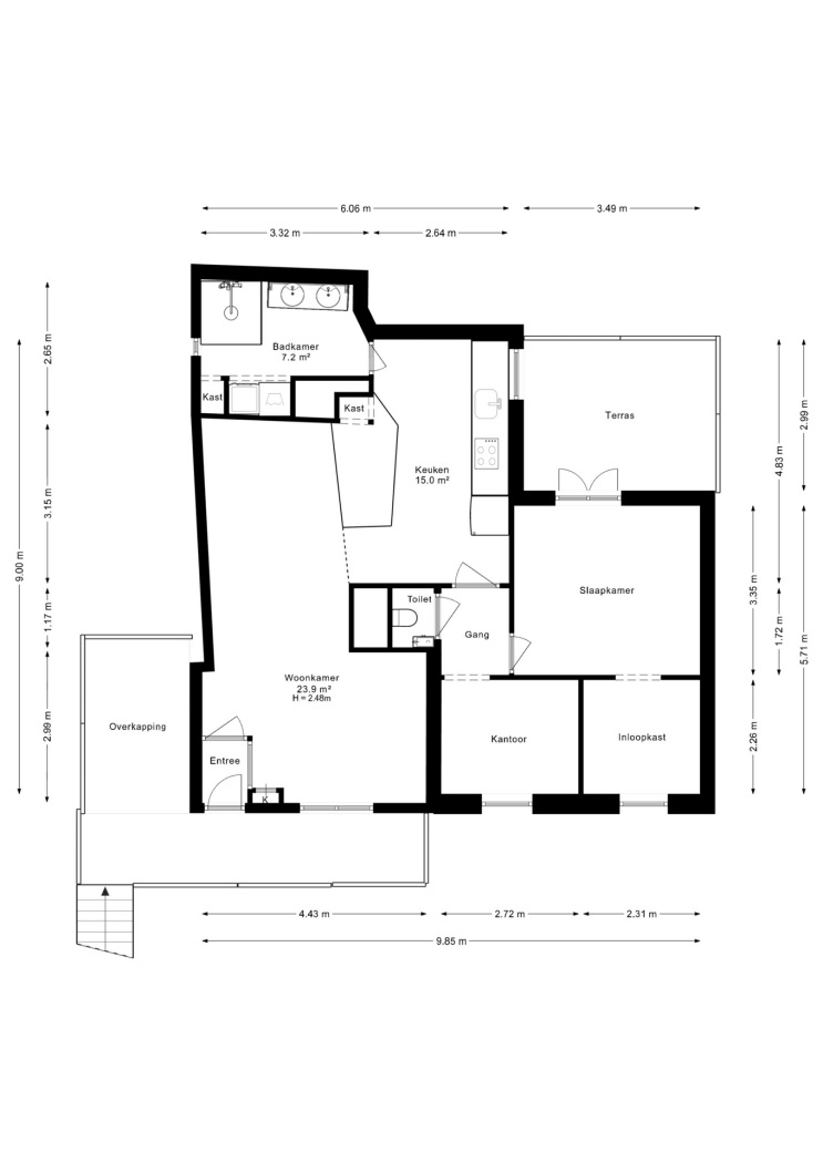 Buiten genieten kan hier volop. Via de hoofdslaapkamer bereik je het dakterras van circa 10 m², een heerlijke plek voor rust en privacy. Daarnaast bevindt zich bovenaan de buitentrap, naast de entree, een knusse overdekte loungeplek van circa 7,24 m², perfect om ontspannen te genieten.