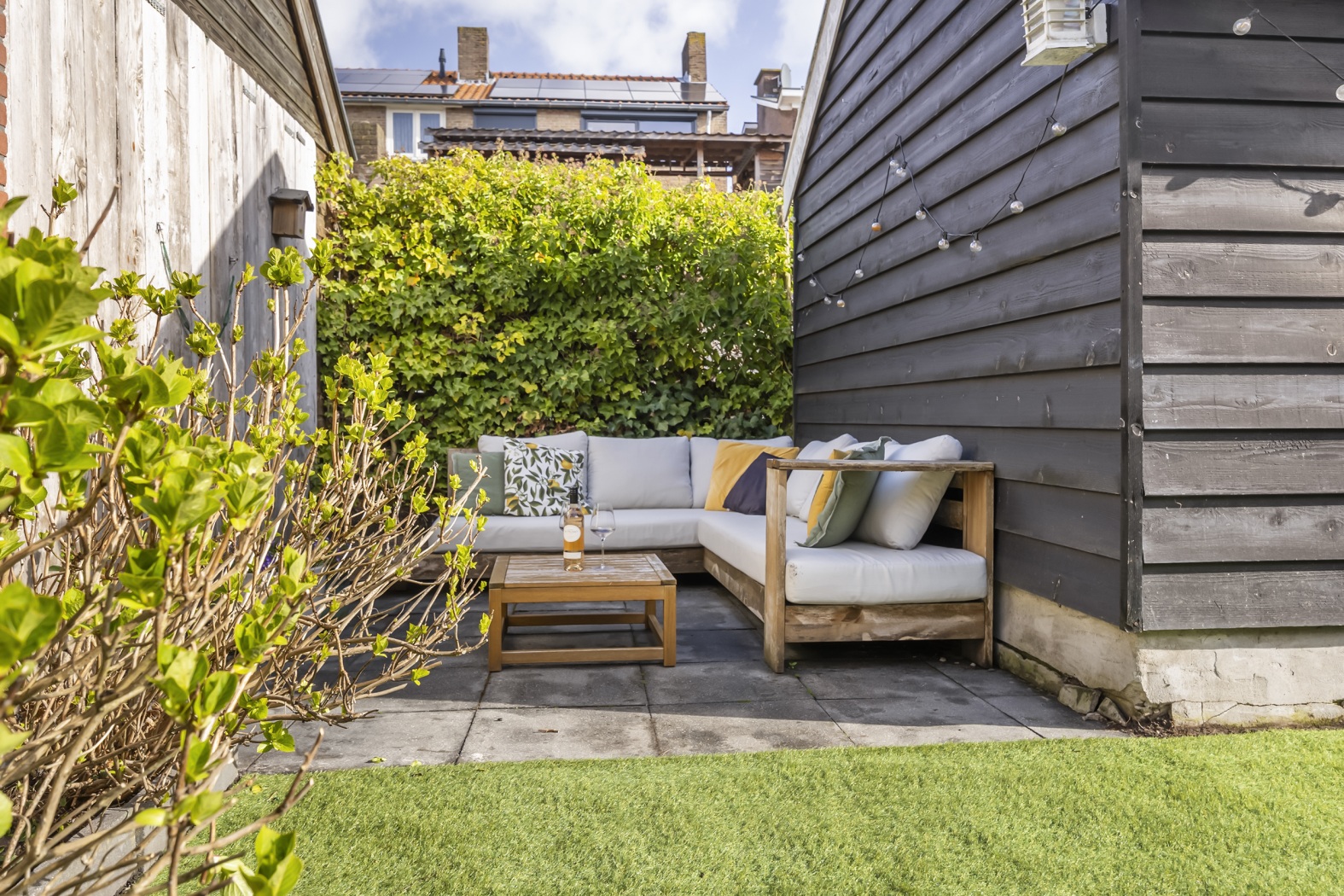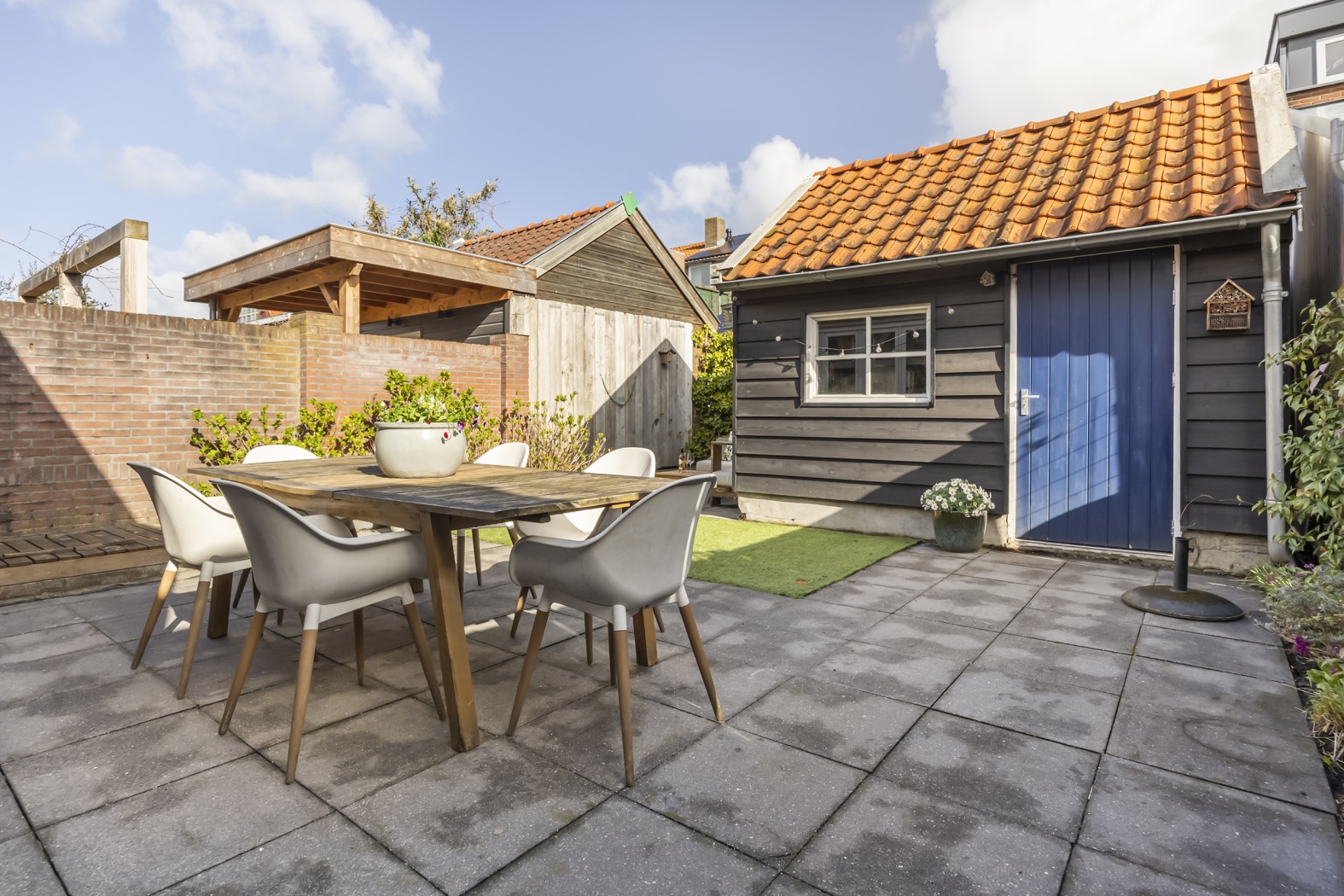 De achtertuin is een echt verlengstuk van de woning. Het royale betegelde terras biedt volop ruimte voor een eettafel waar je heerlijk kunt genieten van het buitenleven. Achterin de tuin bevindt zich een houten berging, ideaal voor fietsen en tuinspullen. Daarnaast is er een sfeervolle hoek gecreëerd waar je eenvoudig een loungeplek kunt realiseren.