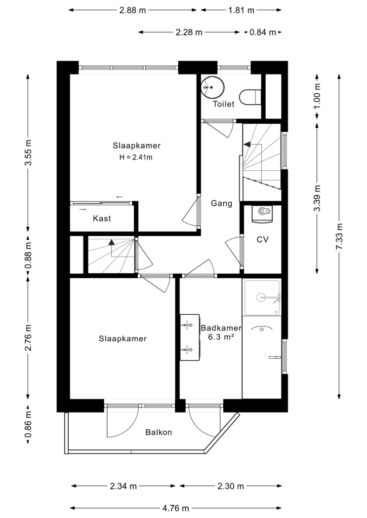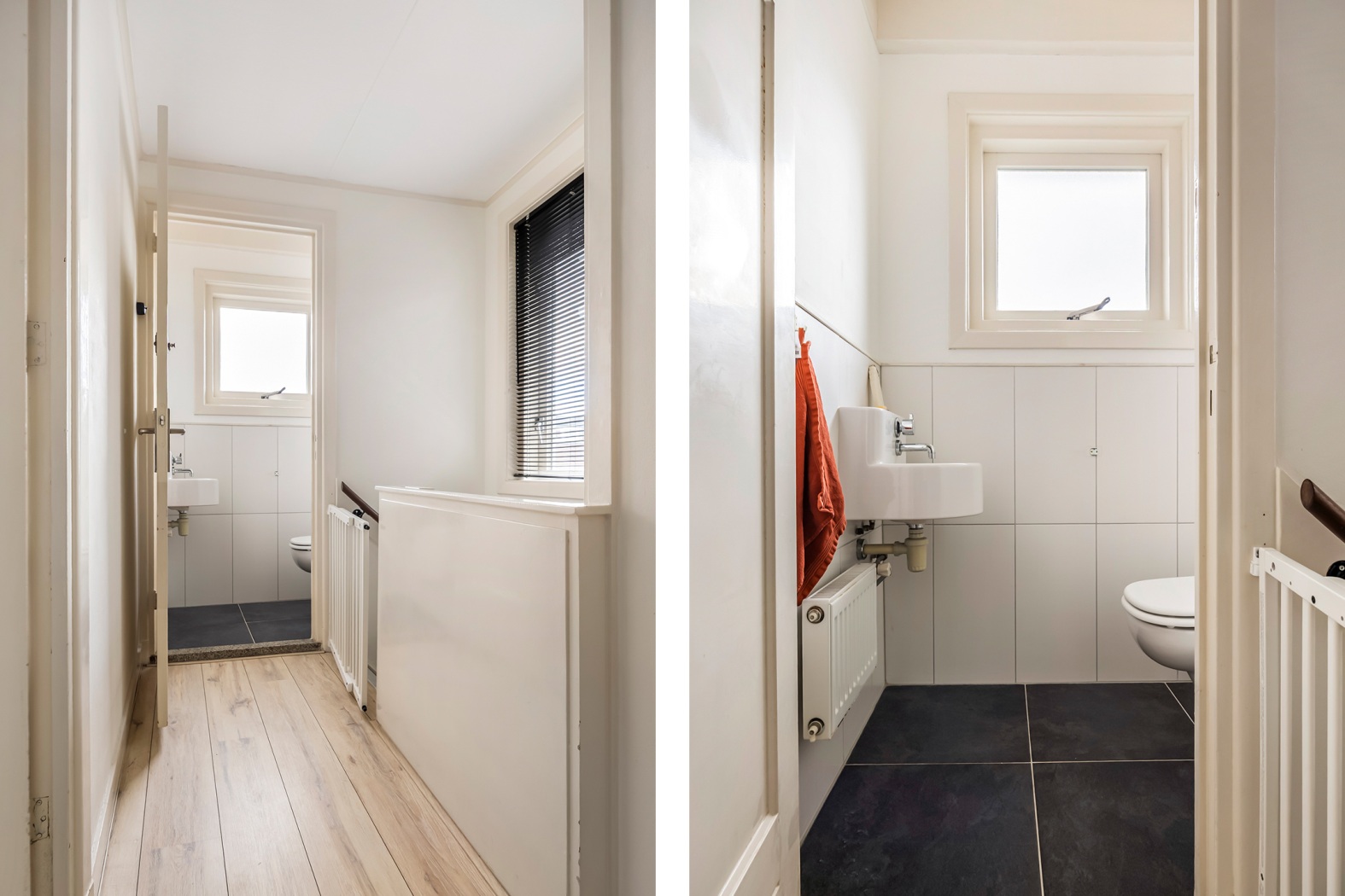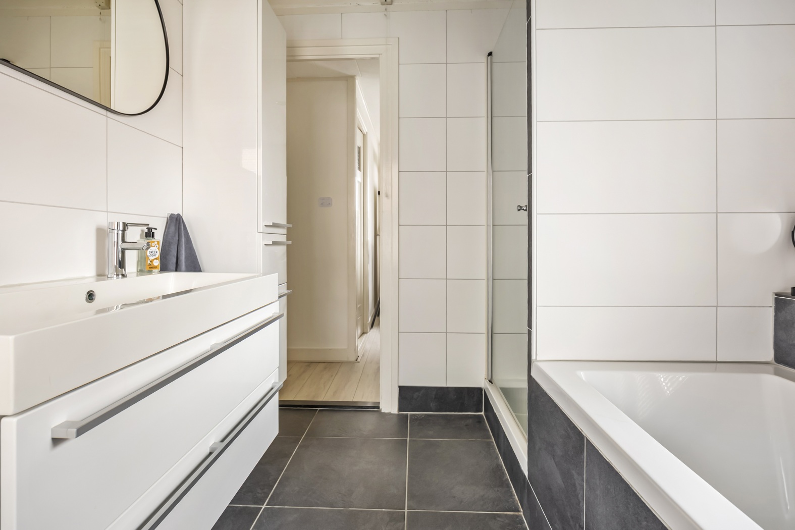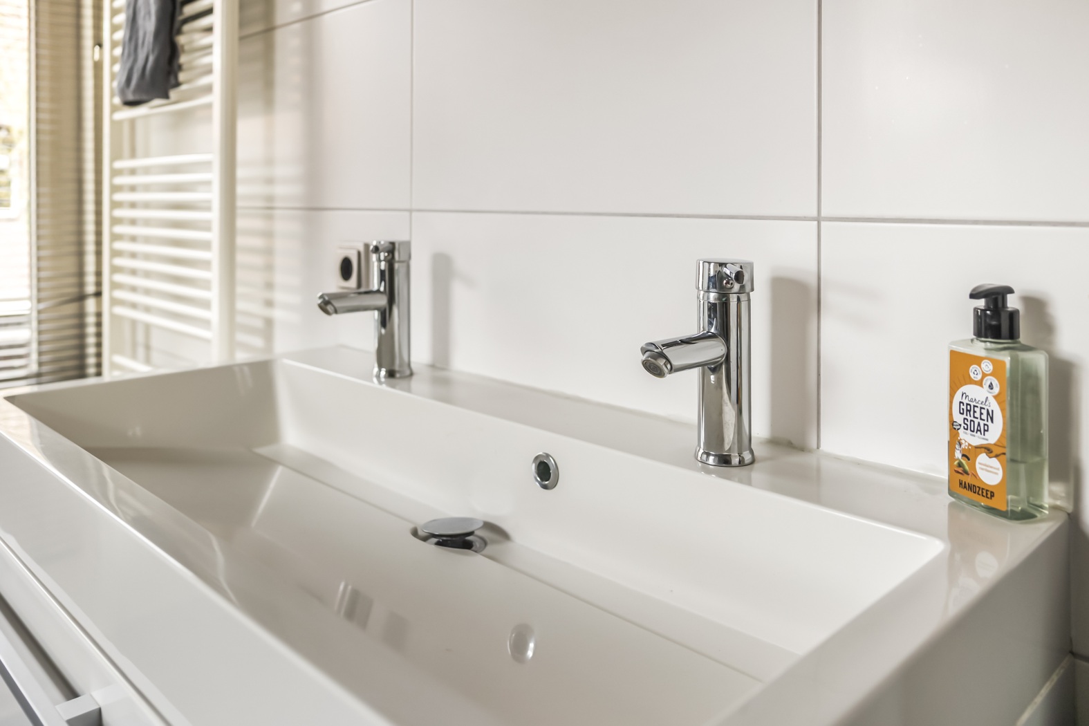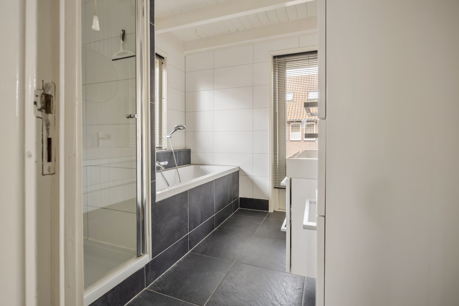 Op de eerste verdieping bevinden zich twee goed bemeten slaapkamers, gelegen aan de voor- en achterzijde van de woning. De slaapkamer aan de voorzijde biedt directe toegang tot het balkon, een fijne extra buitenruimte. De ruime badkamer is modern afgewerkt en beschikt over een ligbad, douche en dubbele wastafel. Uniek is de toegang tot het balkon vanuit de badkamer, wat zorgt voor natuurlijk daglicht en ventilatie. Daarnaast is er op deze verdieping een separaat toilet aanwezig, wat bijdraagt aan extra comfort.