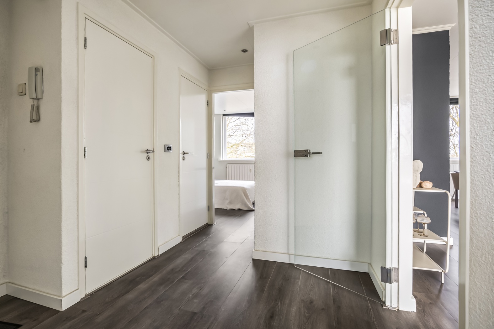 De entree biedt toegang tot een ruime hal die fungeert als centraal punt in de woning. Vanuit hier bereik je de lichte woonkamer, maar ook het separate toilet, de badkamer, 2 slaapkamers, een vaste kast en de meterkast. Deze overzichtelijke indeling zorgt voor een prettig wooncomfort en een logische verbinding tussen de verschillende ruimtes.