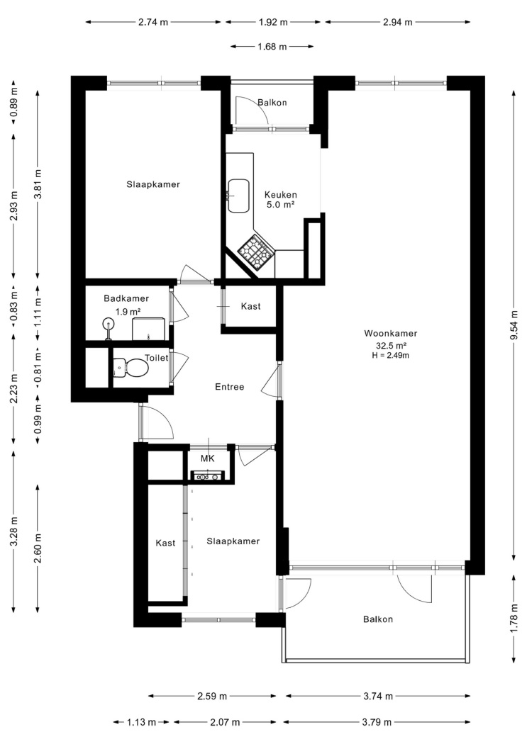 •Twee balkons, waarvan één bereikbaar vanuit zowel de woonkamer als de slaapkamer