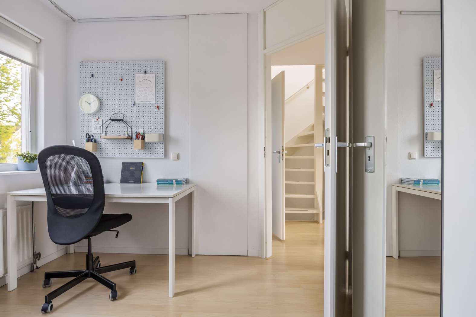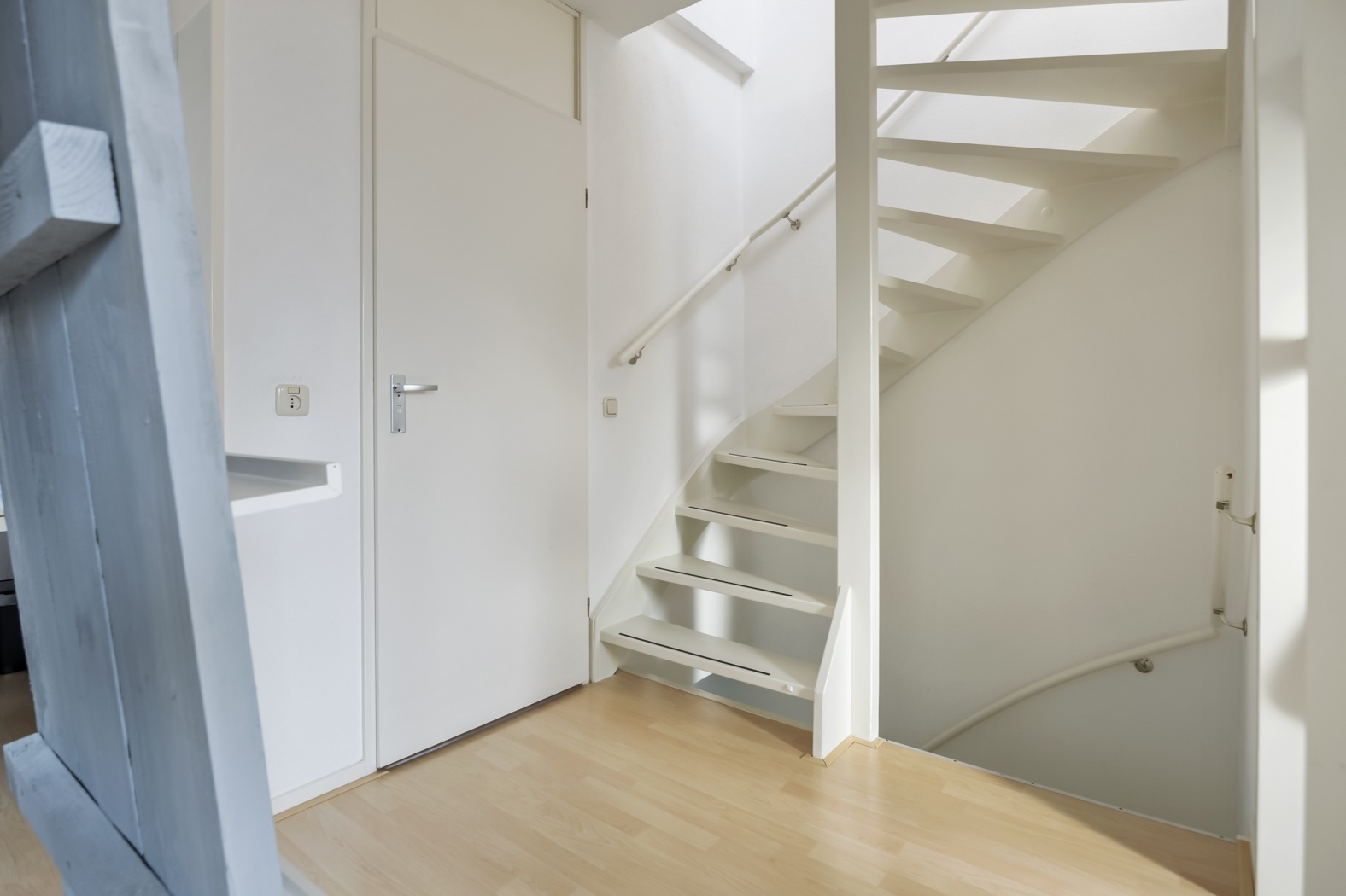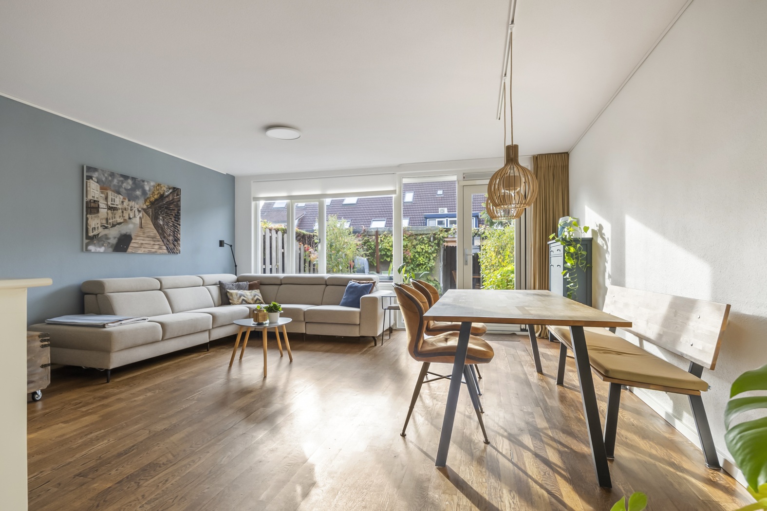 De woonkamer van circa 29 m² is aangenaam licht en biedt via een deur direct toegang tot de tuin. In de woonkamer bevindt zich een praktische trapkast die zorgt voor extra bergruimte. Een ideale plek voor bijvoorbeeld de stofzuiger, voorraad of andere spullen die je graag binnen handbereik hebt, maar liever uit het zicht.
