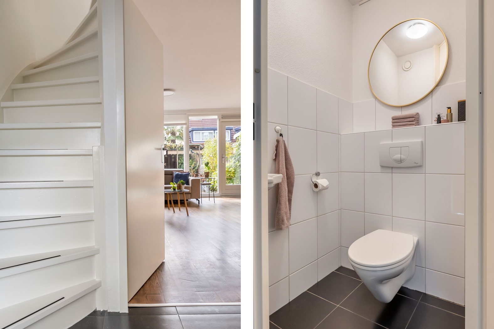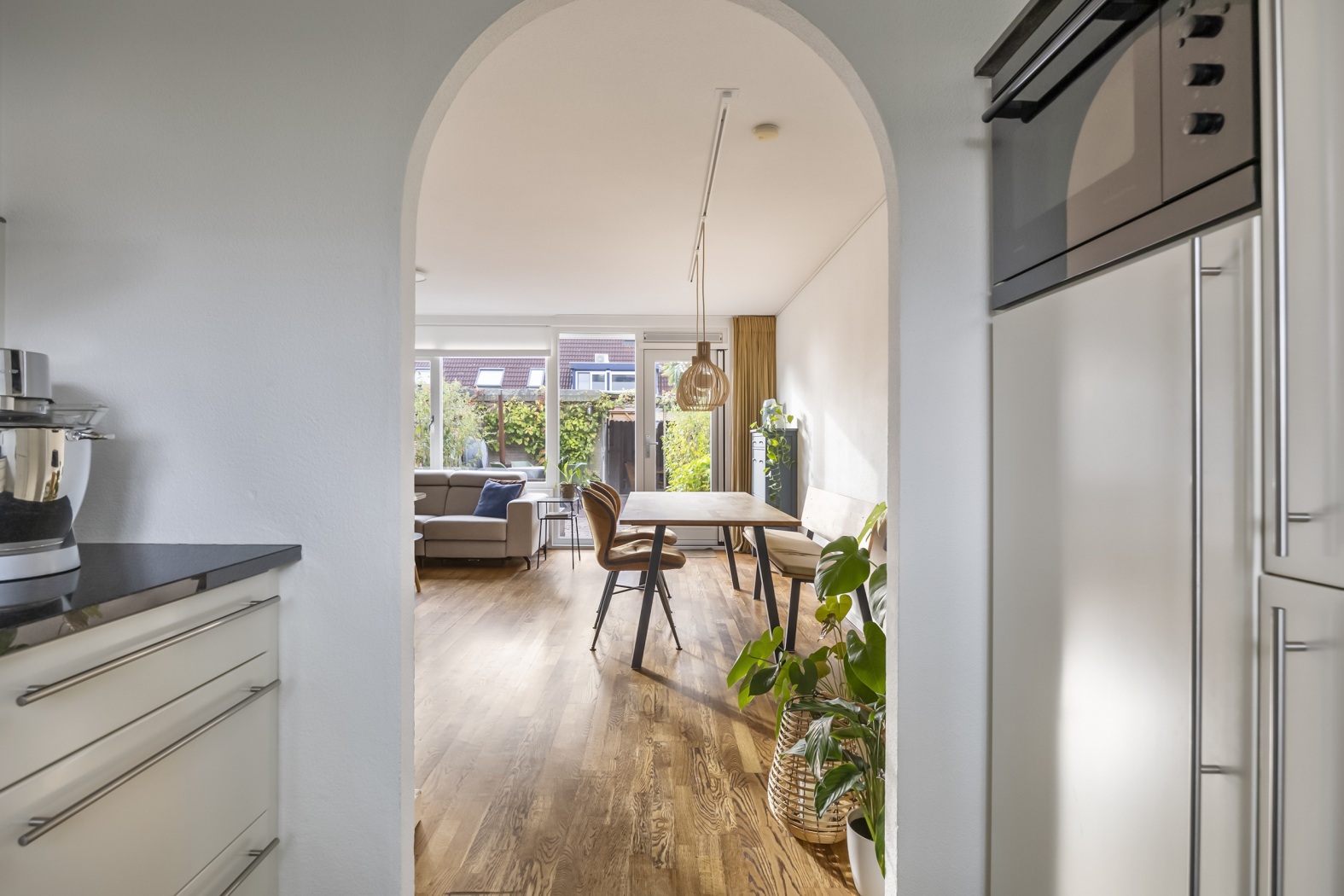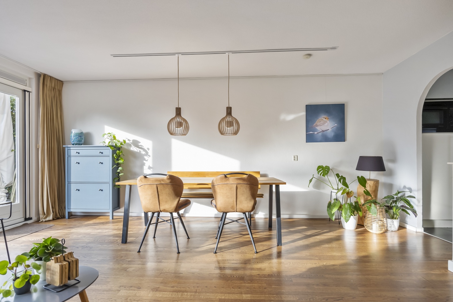 De woonkamer van circa 29 m² is aangenaam licht en biedt via een deur direct toegang tot de tuin. In de woonkamer bevindt zich een praktische trapkast die zorgt voor extra bergruimte. Een ideale plek voor bijvoorbeeld de stofzuiger, voorraad of andere spullen die je graag binnen handbereik hebt, maar liever uit het zicht.