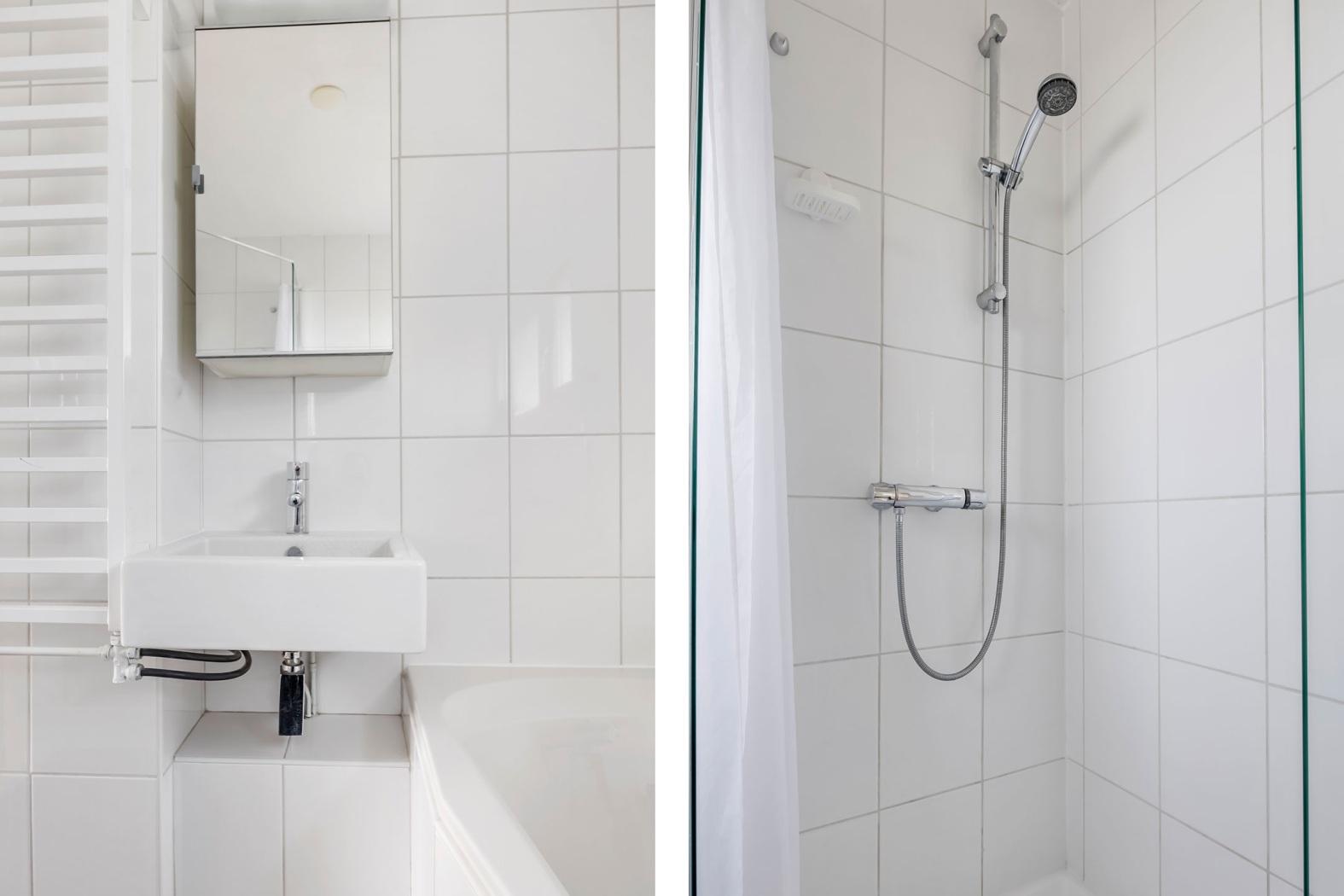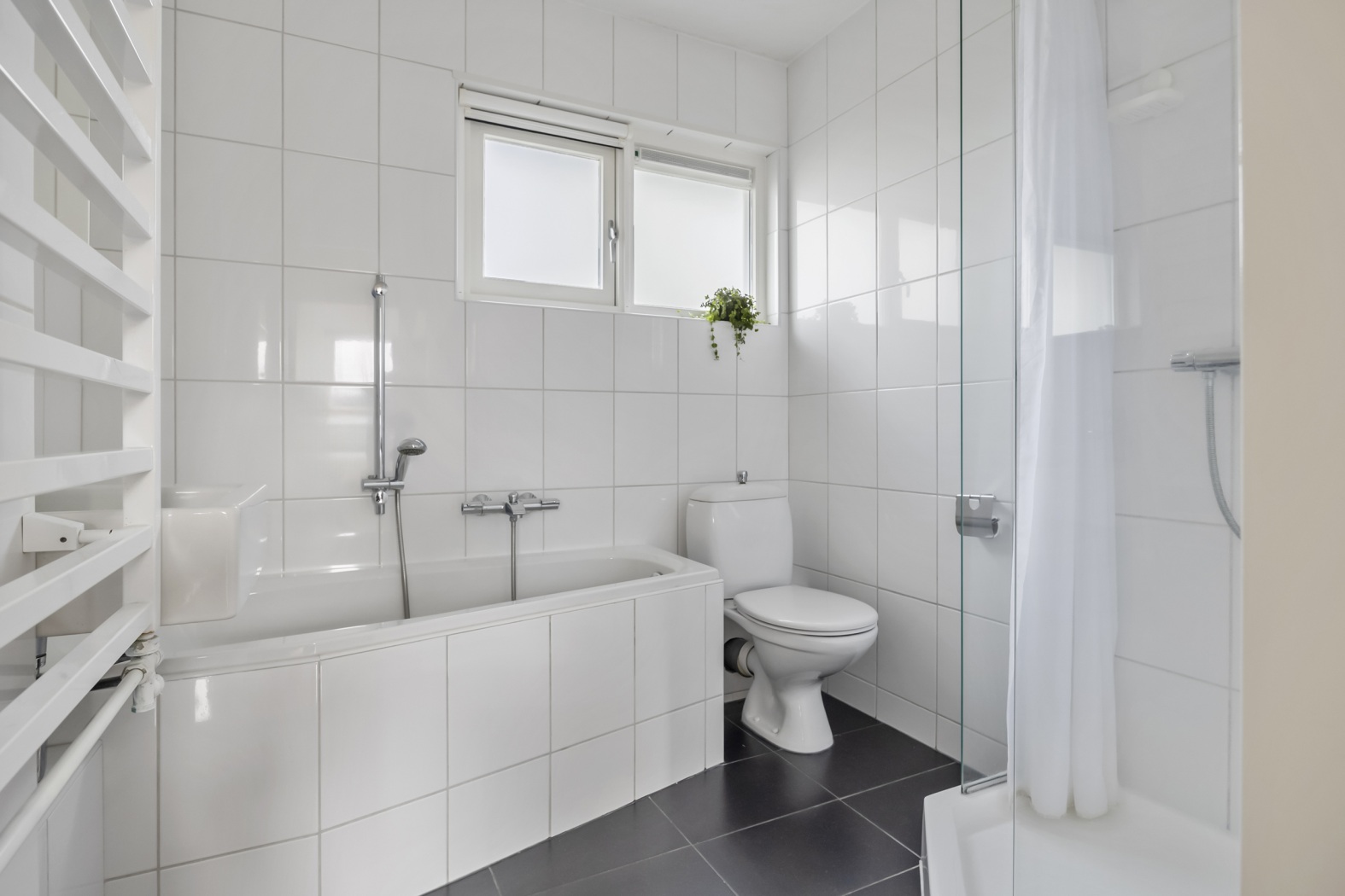 De moderne badkamer biedt alle comfort die je nodig hebt. Je vindt hier een ligbad om heerlijk in te ontspannen, een aparte douchecabine voor de snelle start van de dag, een wastafel met praktische spiegelkast, een tweede toilet en een stijlvolle designradiator. Een verzorgde ruimte waar je iedere dag prettig begint én eindigt.