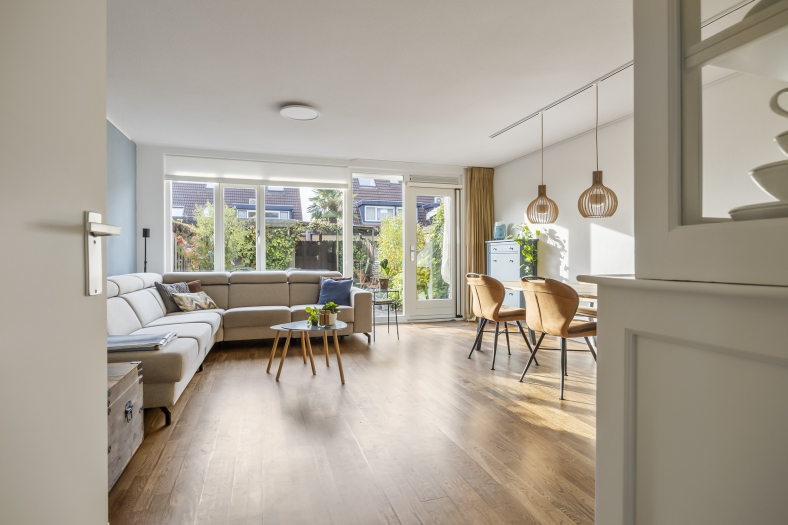 Binnen stap je de tuingerichte woonkamer in, waar je via de achterdeur zó de zon in loopt voor je dagelijkse vitamine D.