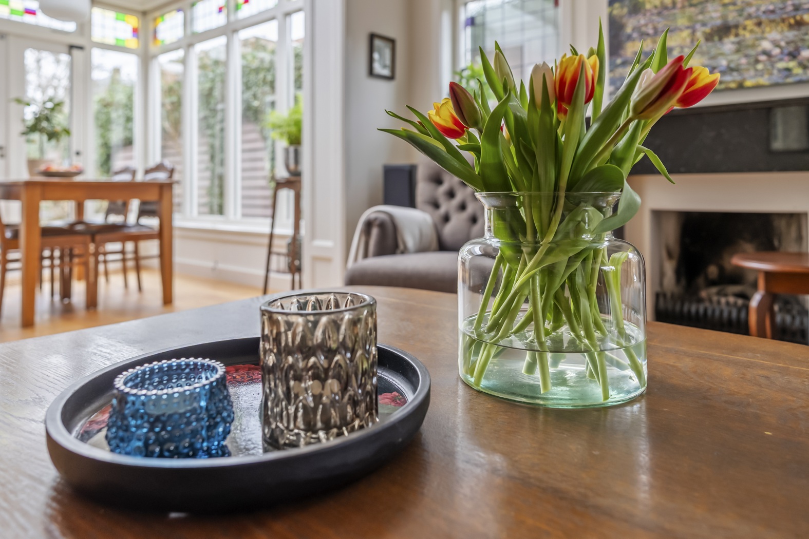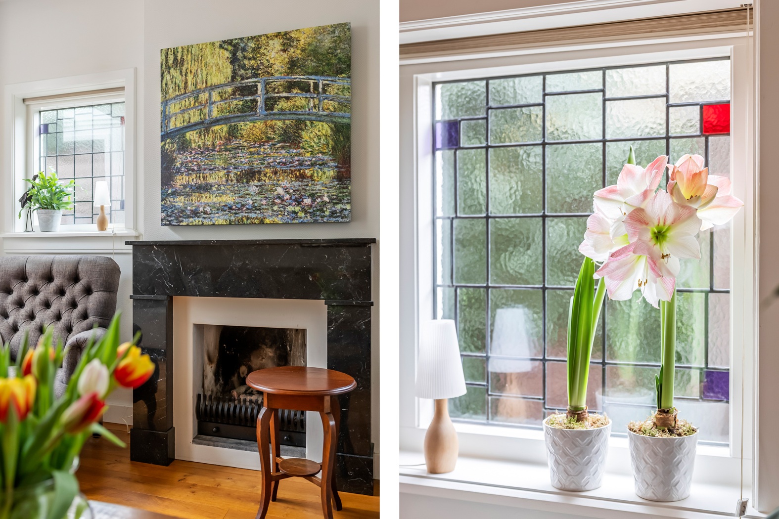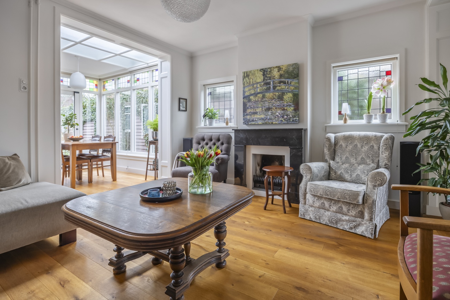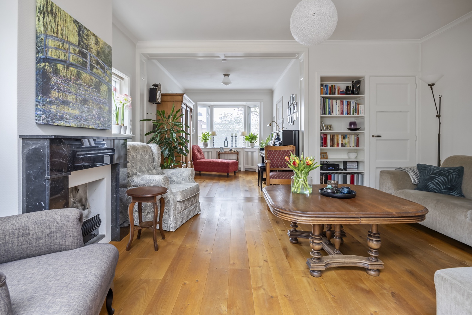 * Sfeervolle woonkamer met marmeren schouw