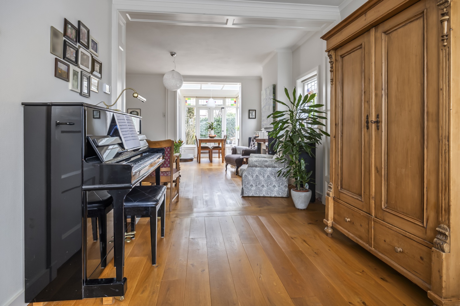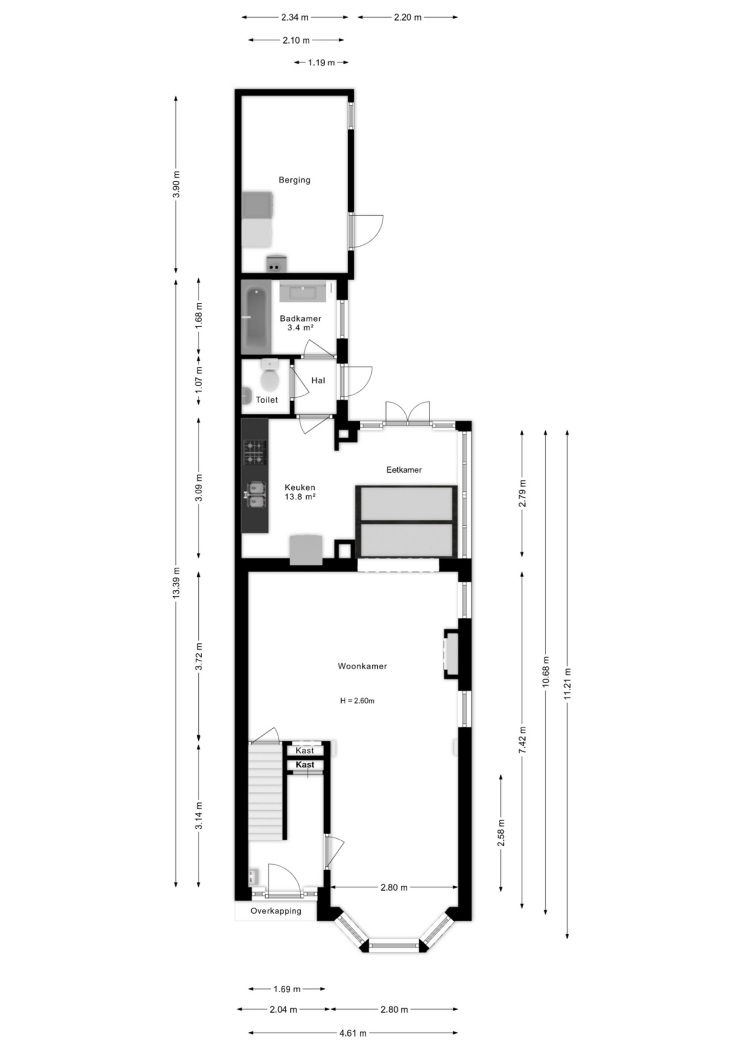 Via de authentieke teakhouten voordeur met driepuntssluiting betreed je de hal met volop ruimte voor je jas en schoenen. Op de benedenverdieping vind je een voorkamer met 'n zonnige erker met openslaande ramen, de zitkamer met twee zijramen en een zwart marmeren schouw. Naast de boekenkast een paneeldeur die toegang biedt tot de ruime kelder voor heel veel voorraad! Een gestuct plafond met fraaie lijst op een hoogte van 2.60 m geeft een ruimtelijk gevoel.