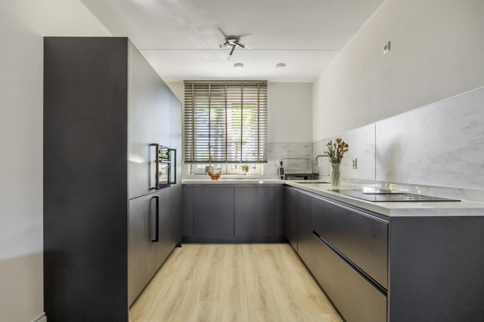 De open keuken aan de voorzijde (2024) is uitgevoerd in een stijlvolle zwarte U-opstelling en voorzien van alle gewenste inbouwapparatuur: een inductiekookplaat met geïntegreerde afzuiging, combi-oven, vaatwasser en koel-vriescombinatie. Een echte eyecatcher waar koken en gezelligheid samenkomen.