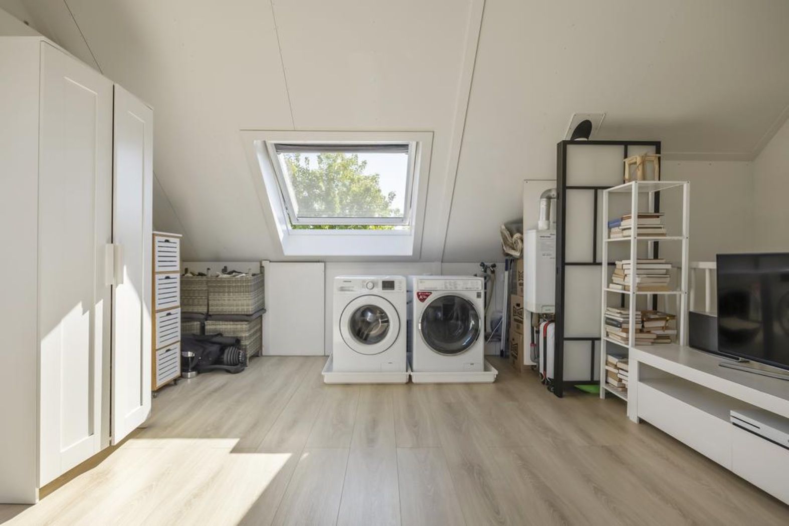 De tweede verdieping is een ruime en multifunctionele etage met twee dakramen, waardoor het een lichte en prettige ruimte is. Hier bevinden zich de aansluitingen voor wasmachine en droger en de cv-installatie. Deze verdieping is perfect in te richten als vierde slaapkamer, thuiskantoor, hobbyruimte of thuisgym.