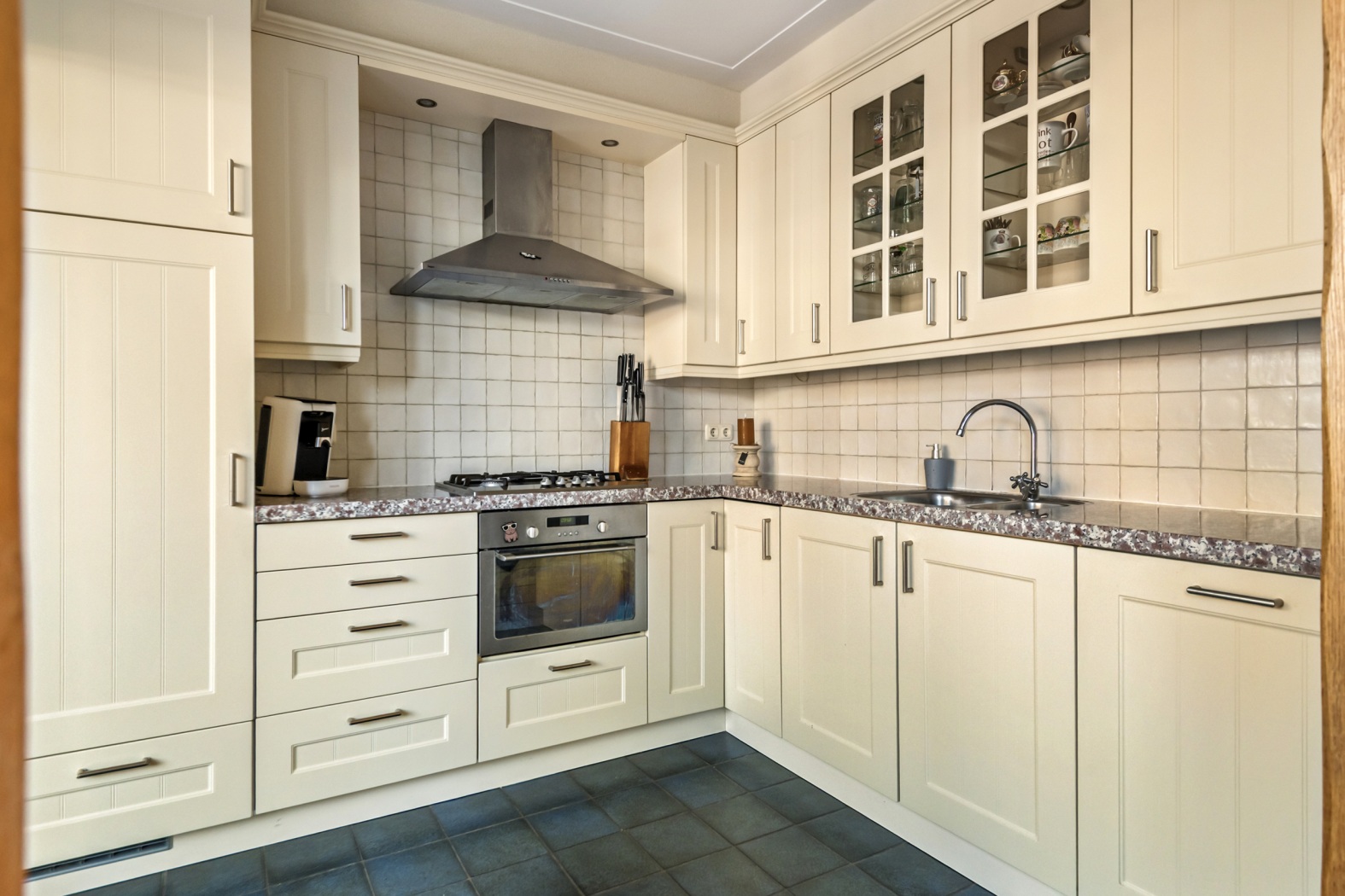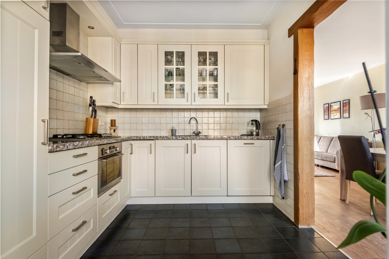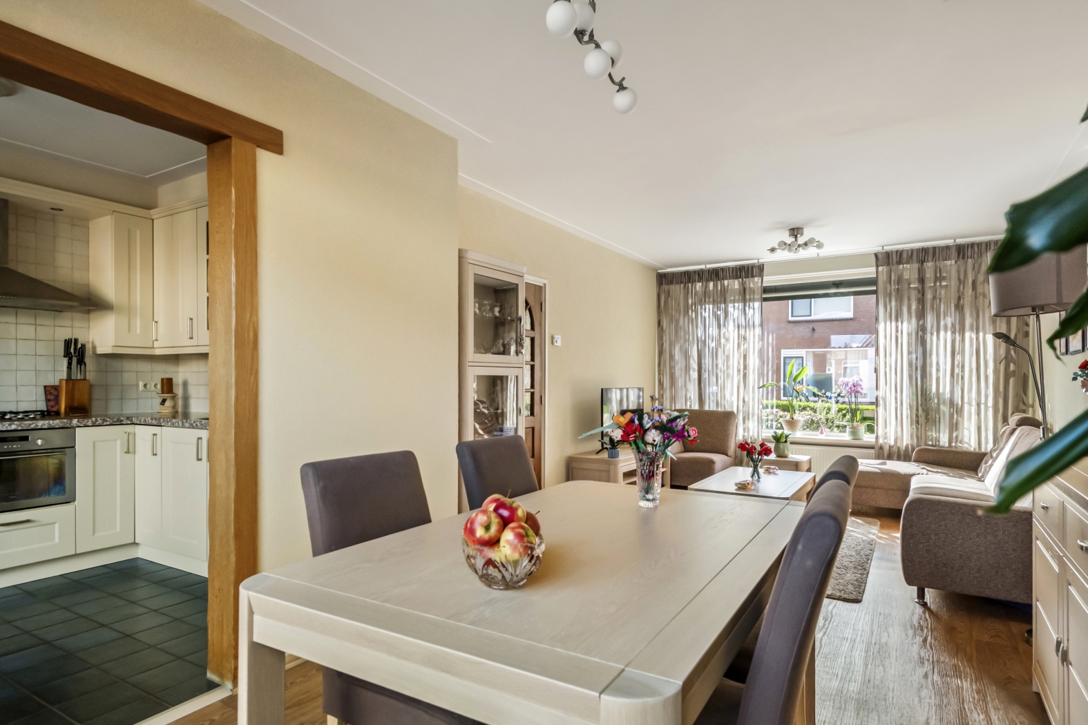 De begane grond is ruim en licht opgezet. De woonkamer biedt voldoende plek voor een comfortabele zithoek en een gezellige eethoek. Dankzij de fijne indeling en lichtinval voelt de ruimte direct prettig aan. De halfopen keuken sluit hier naadloos op aan en is netjes onderhouden. Deze is voorzien van inbouwapparatuur en biedt een goede basis om eventueel te vernieuwen naar een moderne woonkeuken. Aangrenzend vind je de praktische bijkeuken met aansluitingen voor de wasmachine en droger.