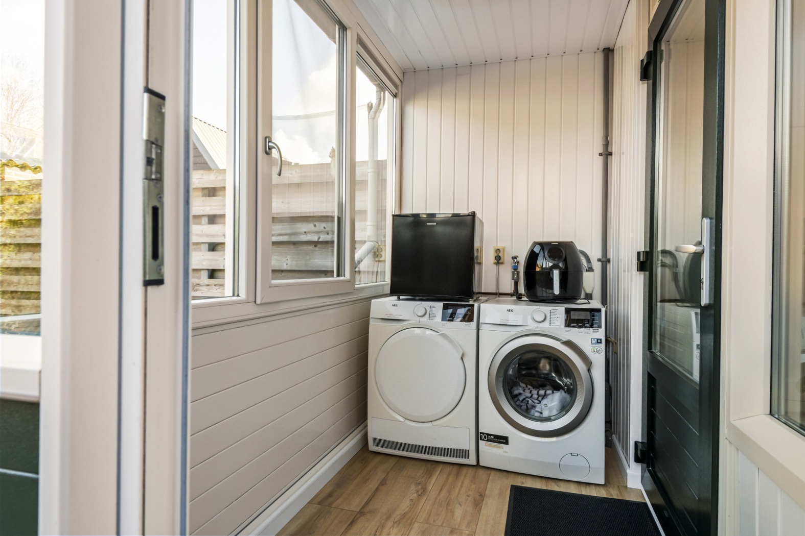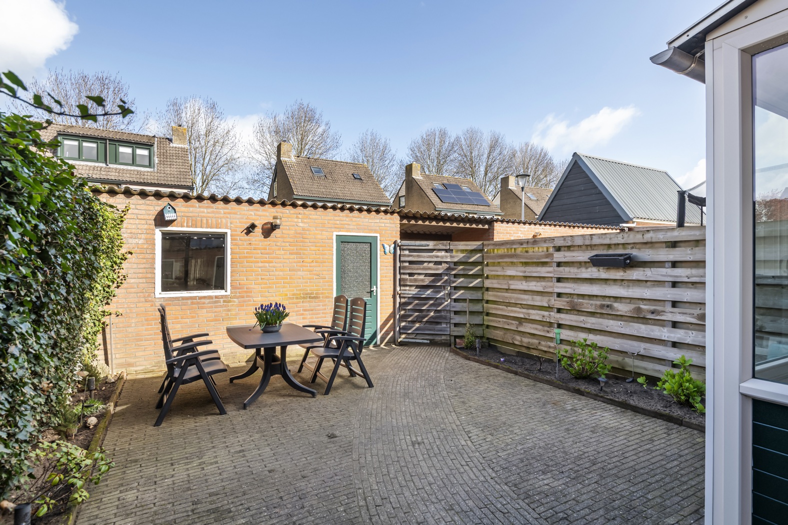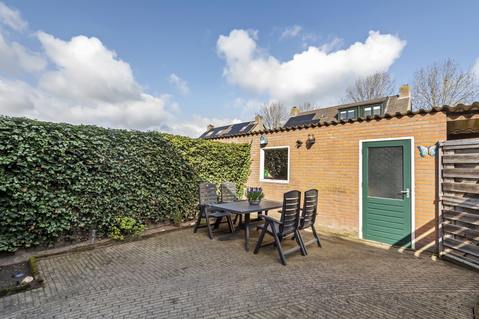 Vanuit de woonkamer stap je via de schuifpui zo de achtertuin in. De tuin is netjes aangelegd en grotendeels betegeld, wat zorgt voor weinig onderhoud. Er is volop ruimte voor het creëren van een fijne loungeplek of eethoek. Achterin de tuin staat een stenen berging, ideaal voor fietsen en extra opslag.