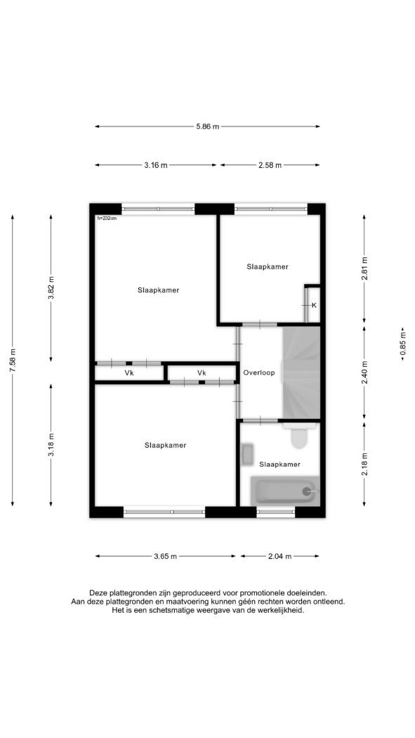 De tweede verdieping biedt een extra ruimte met volop potentie. Deze verdieping is klaar om getransformeerd te worden tot een extra slaapkamer, werkruimte, hobbykamer of logeerkamer: helemaal naar jouw wensen.