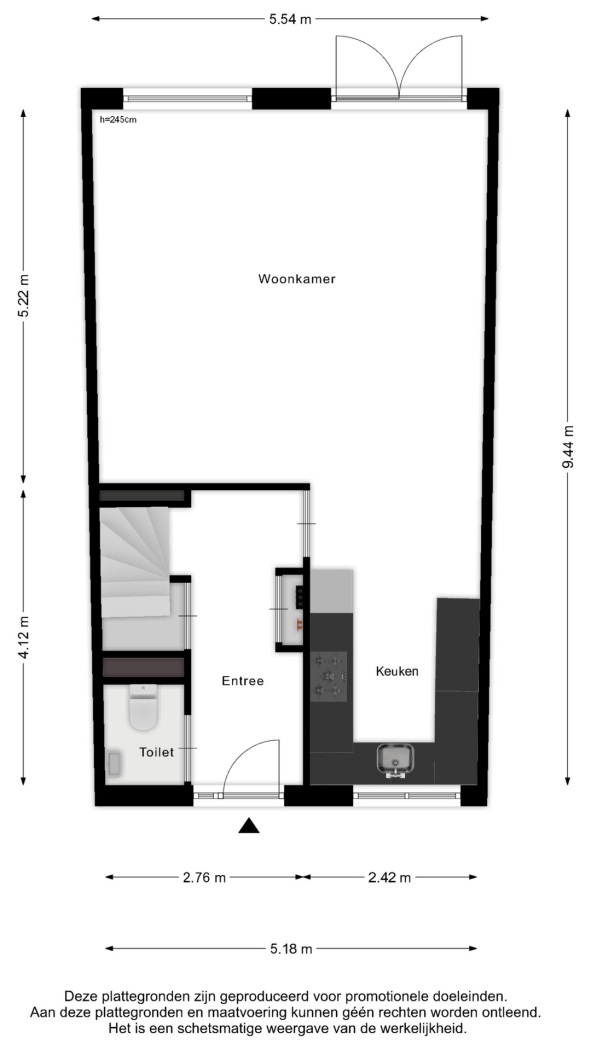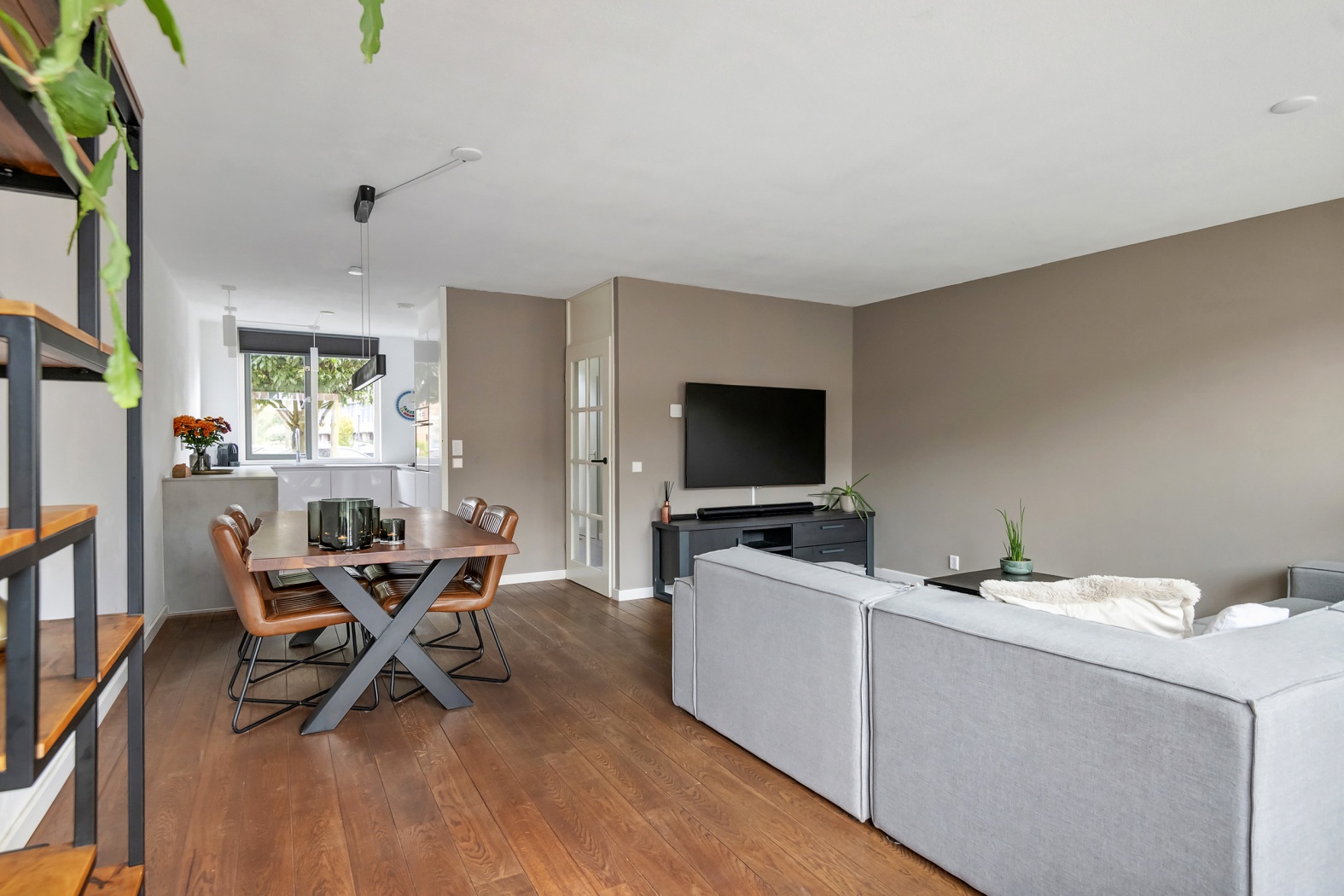 •Sfeervolle woonkamer met dubbele tuindeuren & moderne keuken (samen ca. 39 m²)