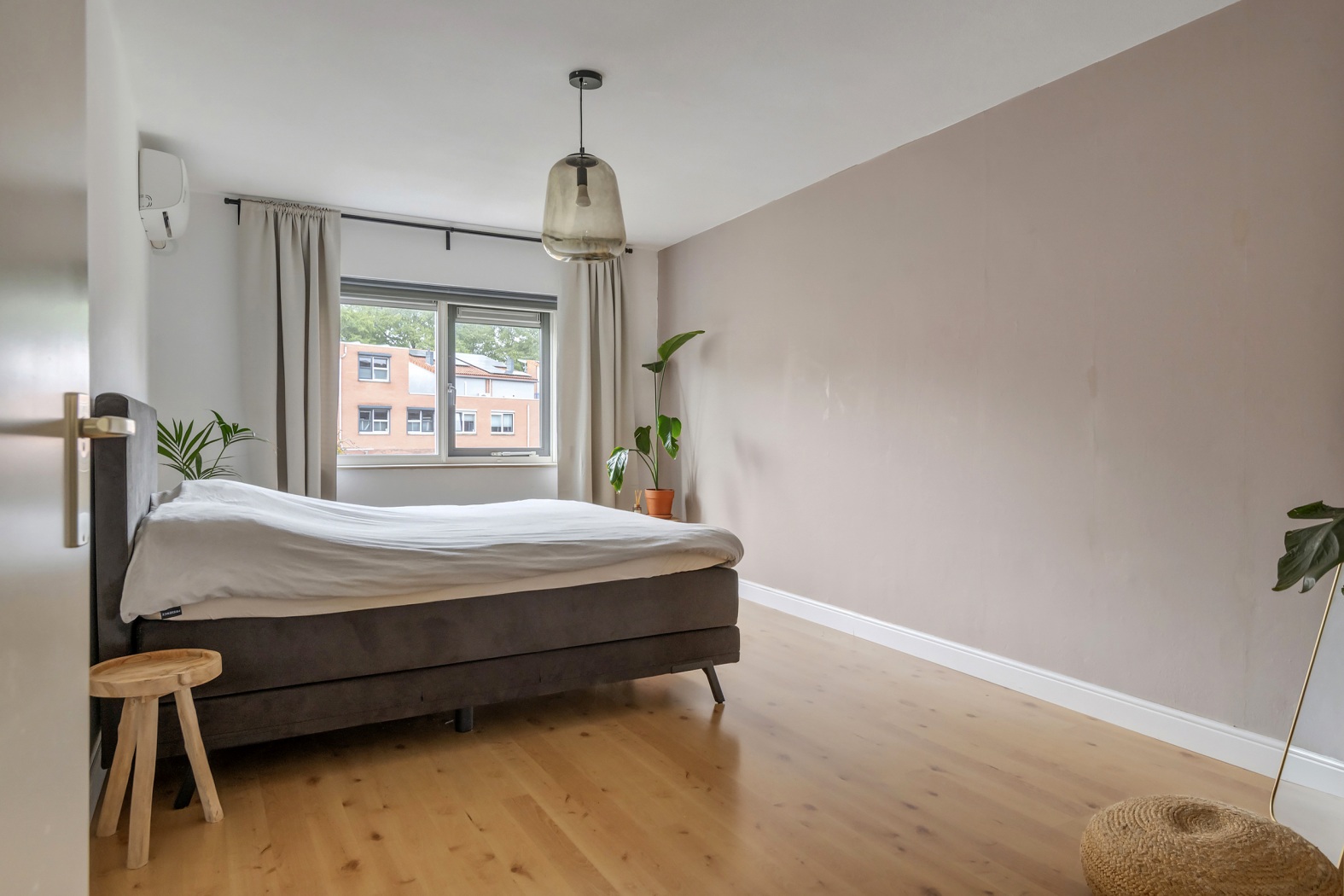Op deze verdieping bevinden zich drie slaapkamers: twee aan de achterzijde, waarvan één met airconditioning, en één aan de voorzijde met een eigen wastafel. Hiermee komt het totaal aantal slaapkamers in de woning op vijf.