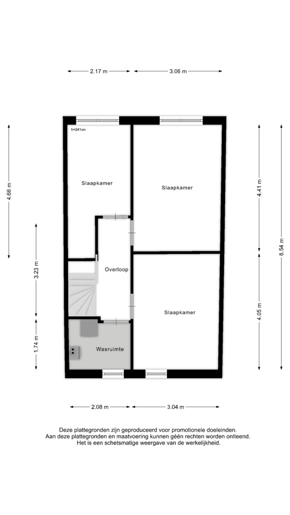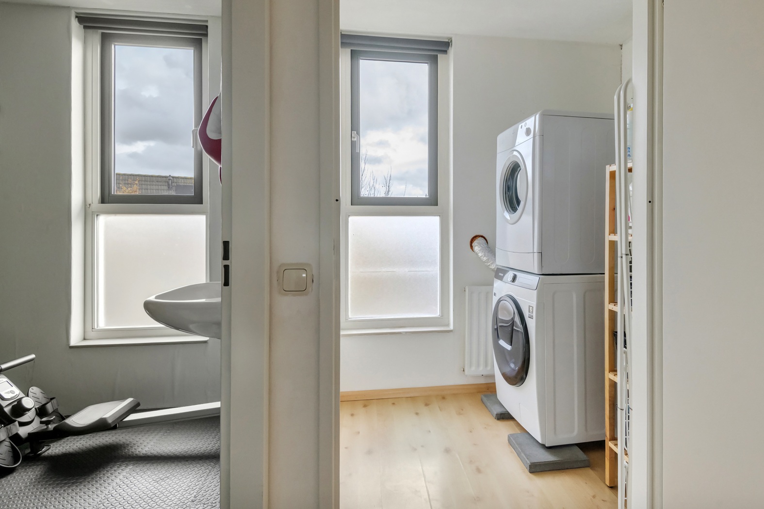 Daarnaast is er een overloop en een aparte wasruimte met aansluitingen voor de wasmachine, droger en de opstelplaats voor de cv-installatie.