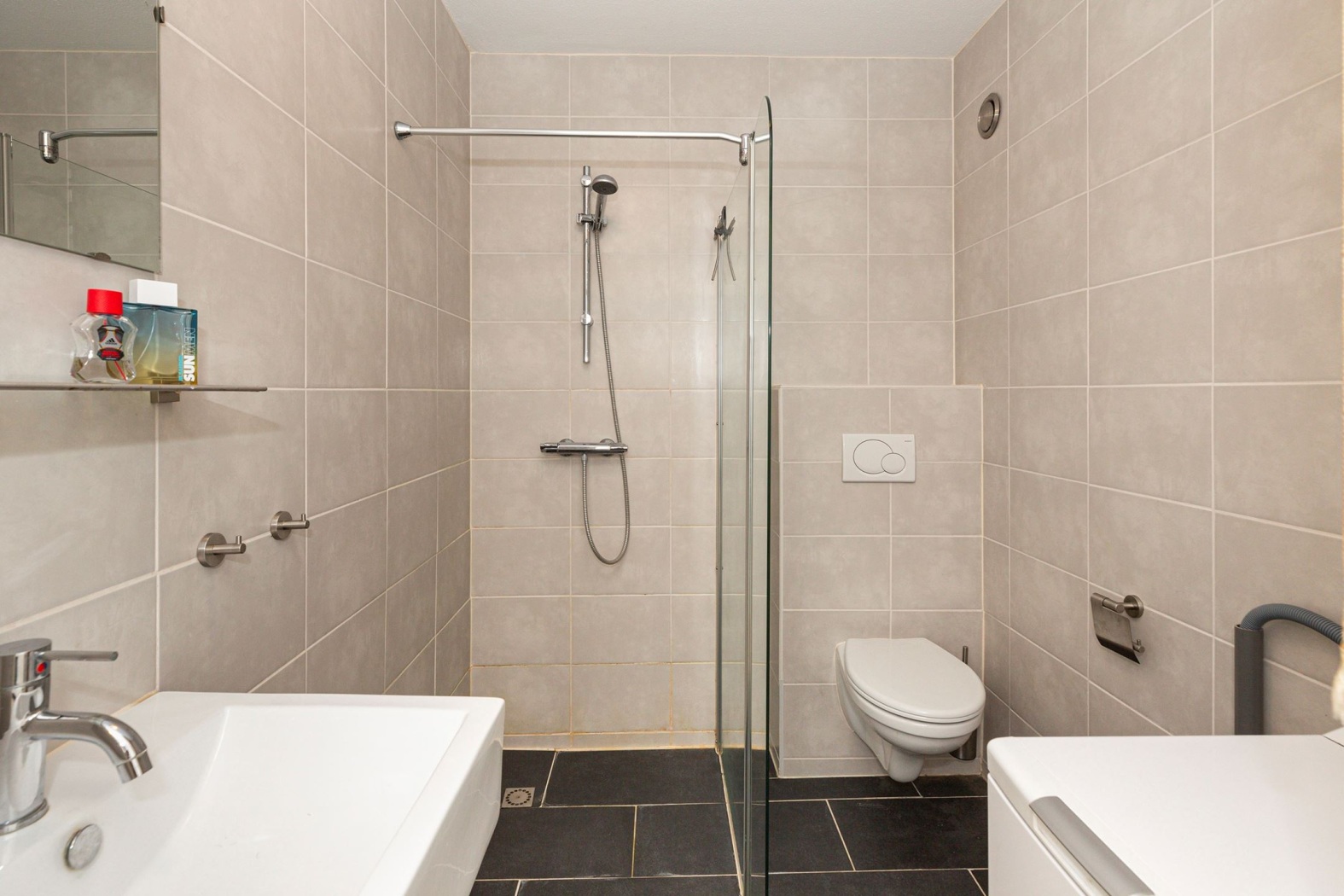 Op de bovenverdieping geeft de overloop toegang tot twee slaapkamers. De grootste slaapkamer geeft toegang tot het tweede balkon op het westen. De tweede slaapkamer is gelegen aan de oostkant van het complex. Verder vind je hier de badkamer, voorzien van een inloopdouche, wastafel en tweede toilet. Ook is er een kast met de aansluiting voor de wasmachine.