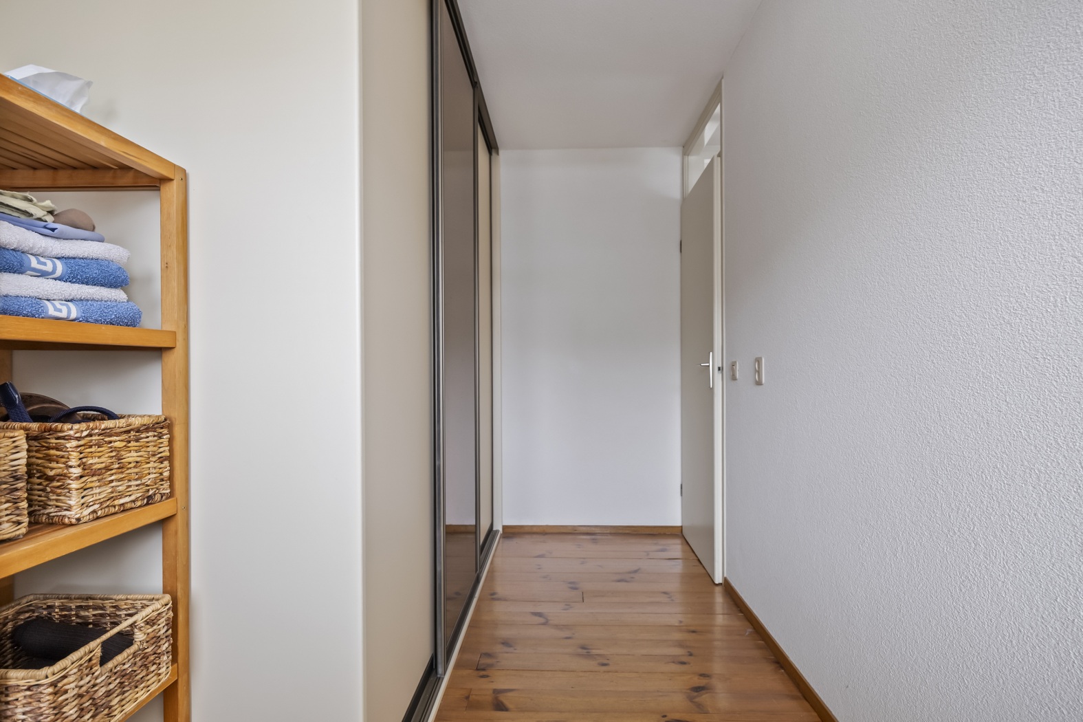Op de eerste verdieping vind je drie slaapkamers: twee aan de voorzijde en één aan de achterzijde. De slaapkamer aan de achterzijde is uitgerust met een praktische driedeurs schuifwandkast.