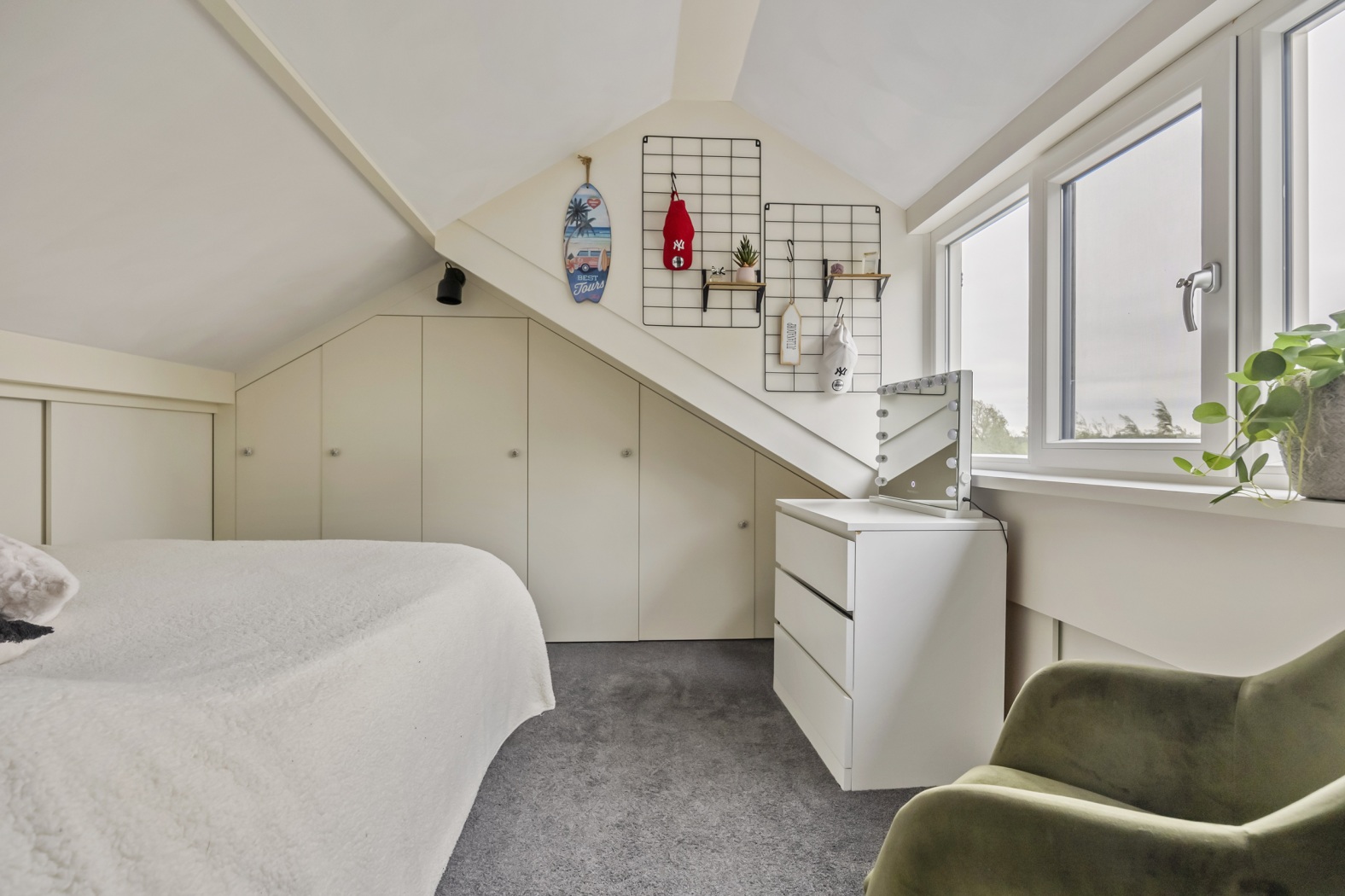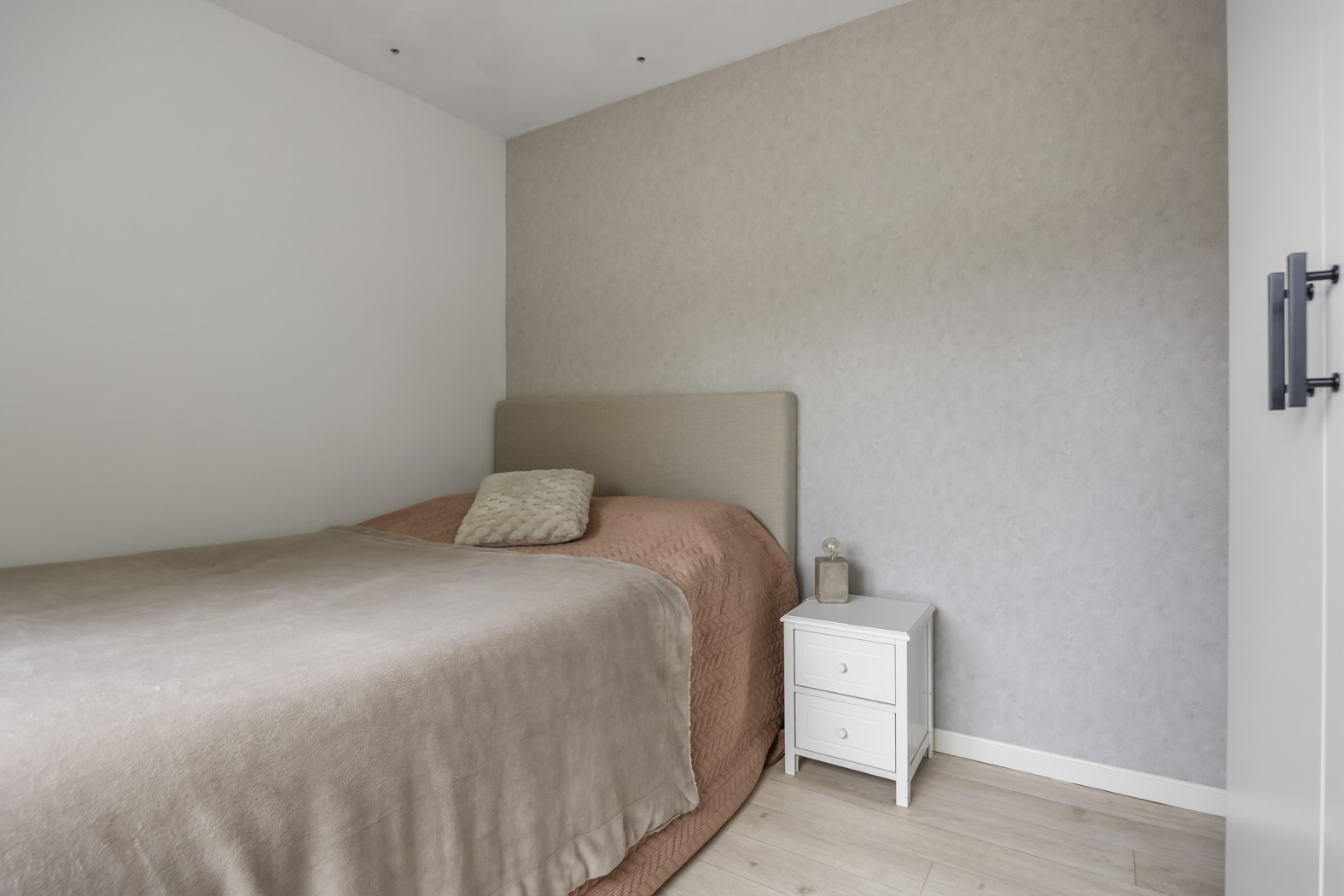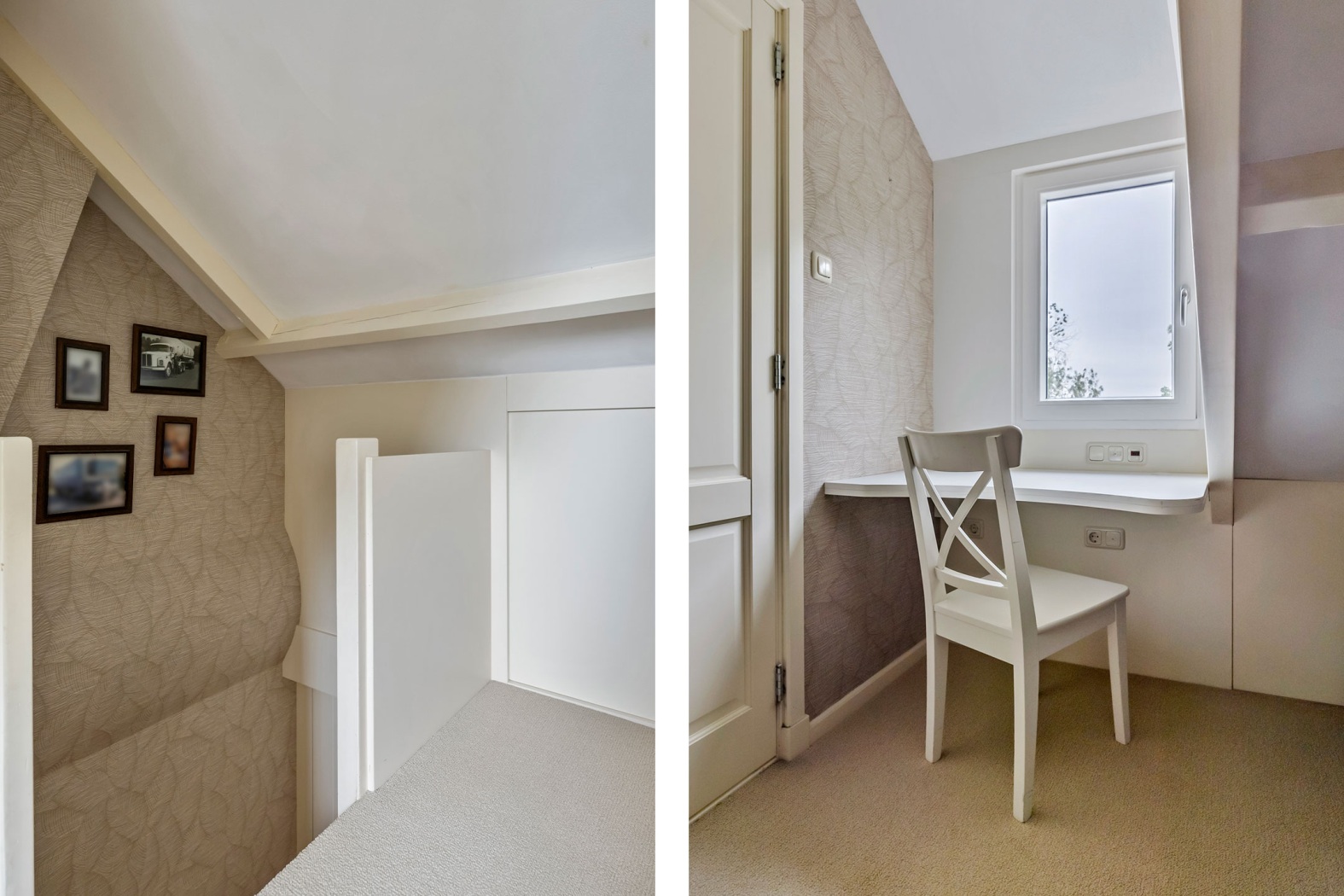 De tweede verdieping verrast met een ruime vierde slaapkamer, vergroot dankzij de dakopbouw met rolluik. Hierdoor is er niet alleen volop licht en ruimte, maar ook veel praktische bergruimte gecreëerd. Een ideale plek als extra slaapkamer, werkruimte of hobbykamer.
