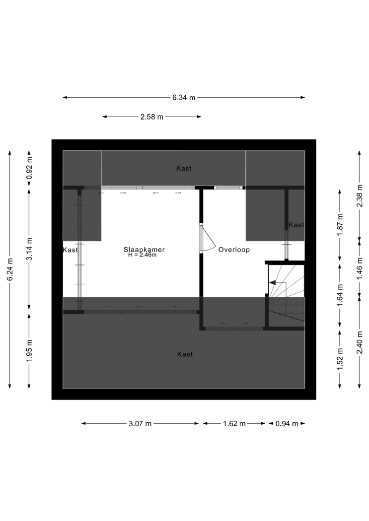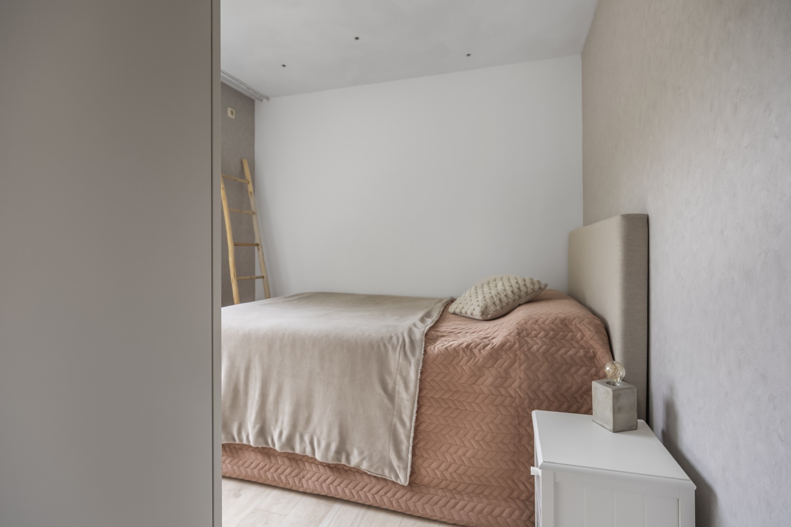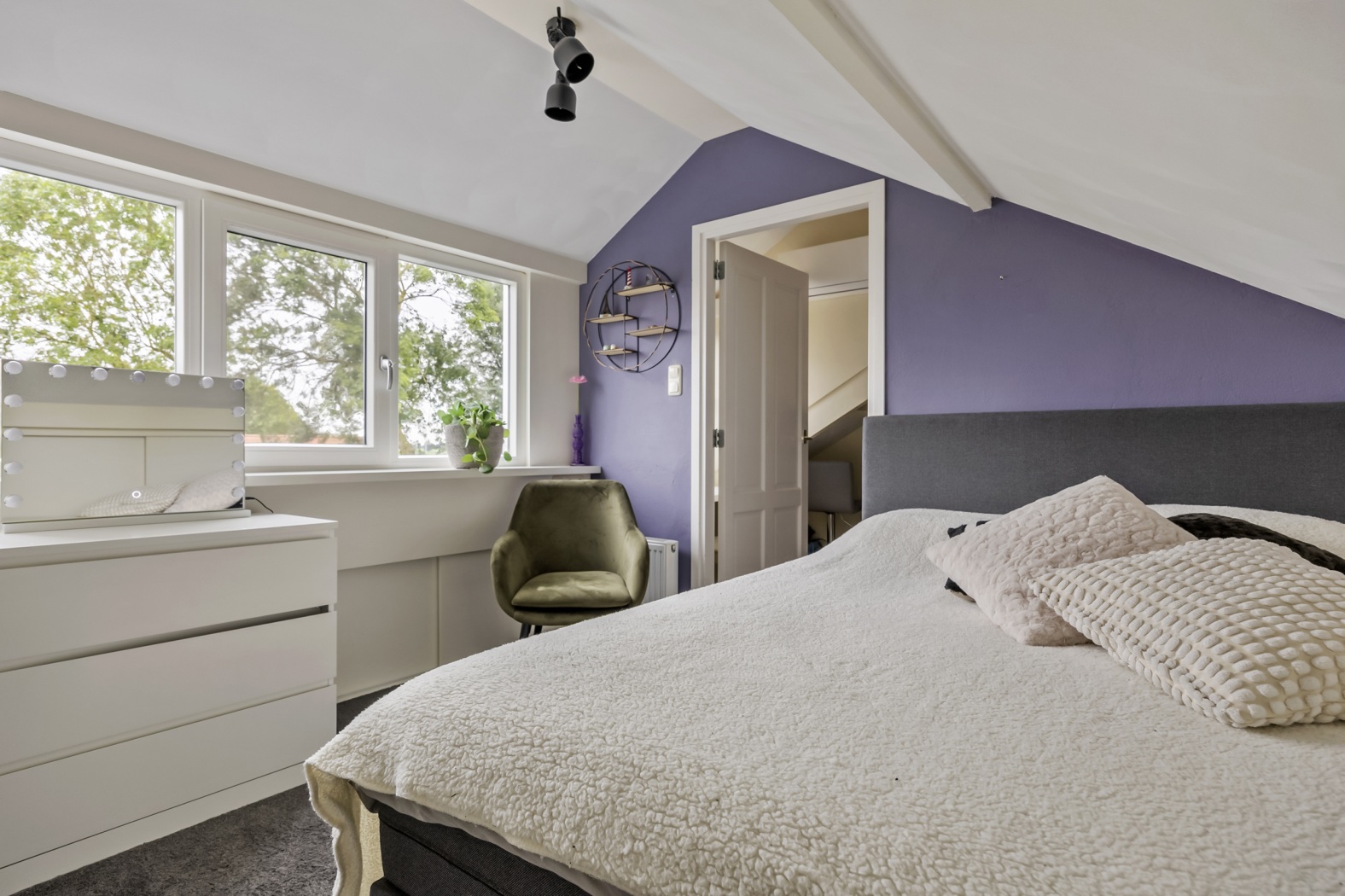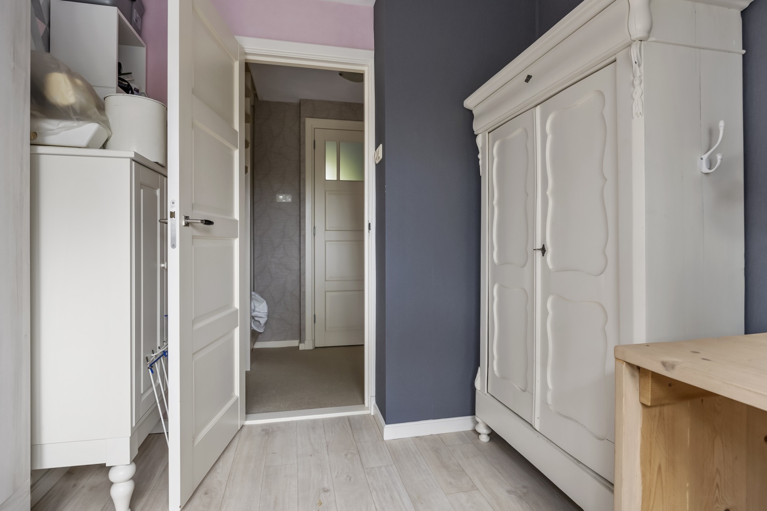 De tweede verdieping verrast met een ruime vierde slaapkamer, vergroot dankzij de dakopbouw met rolluik. Hierdoor is er niet alleen volop licht en ruimte, maar ook veel praktische bergruimte gecreëerd. Een ideale plek als extra slaapkamer, werkruimte of hobbykamer.
