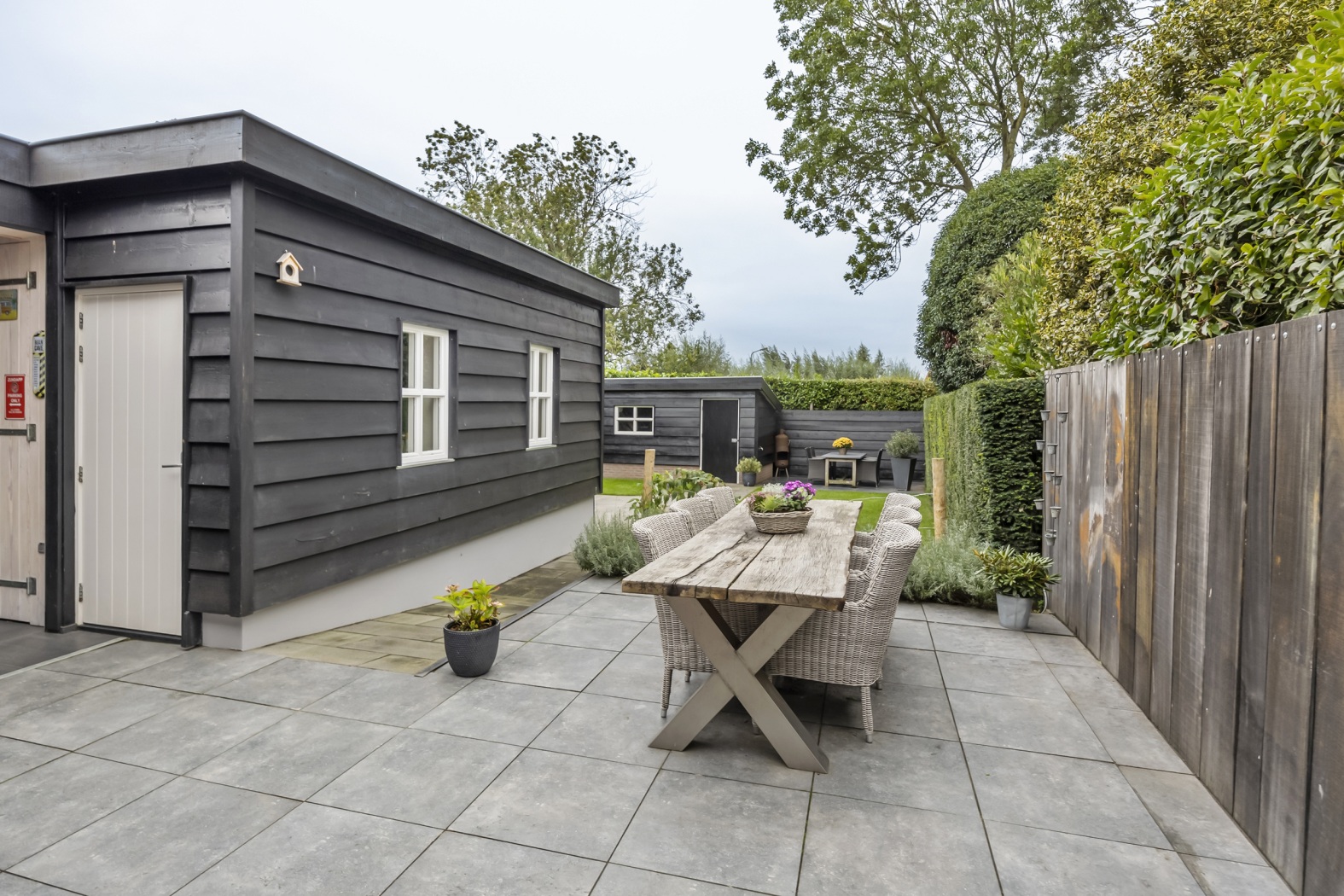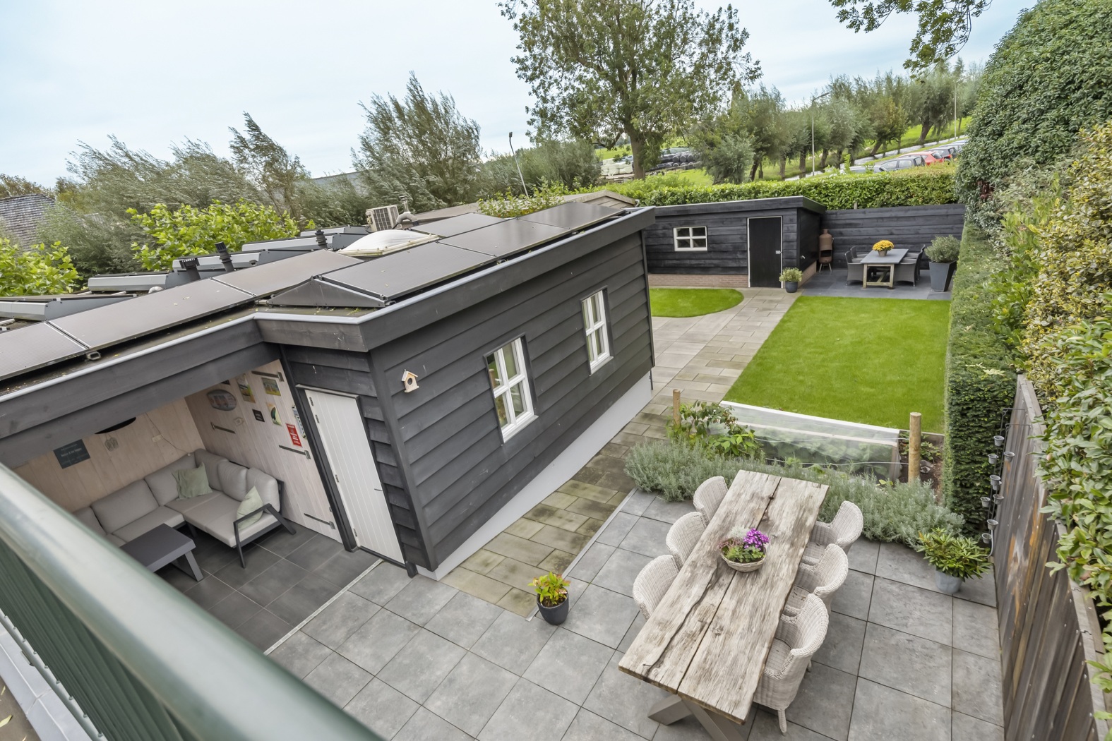 De woning beschikt over een heerlijke, zonnige tuin op het zuiden – de ideale plek om te genieten van lange zomerdagen. Met een combinatie van een ruim terras, sierlijke tegels en een fris gazon is er voor ieder wat wils. Achterin de tuin staat een gepotdekselde berging van 9 m², praktisch voor fietsen of tuingereedschap.