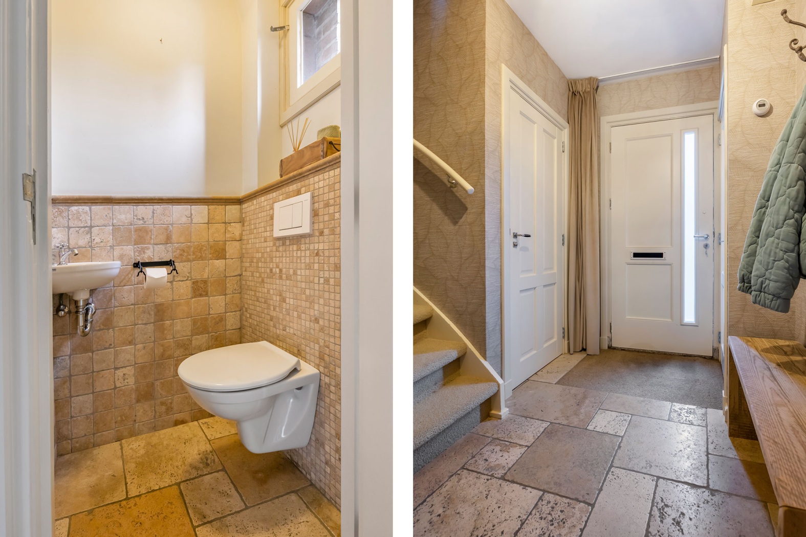 Via de entree stap je binnen in een hal die toegang geeft tot de woonkamer, toiletruimte, meterkast, trapkast én de trap naar boven. Alles netjes bij elkaar, zodat je meteen de goede weg weet te vinden.