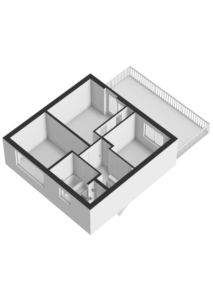 Op de eerste verdieping vind je drie slaapkamers (waarvan één met balkon) en een moderne badkamer. De tweede verdieping verrast met een vierde slaapkamer, voorzien van een dakopbouw – ideaal als werk-, logeer- of tienerkamer.