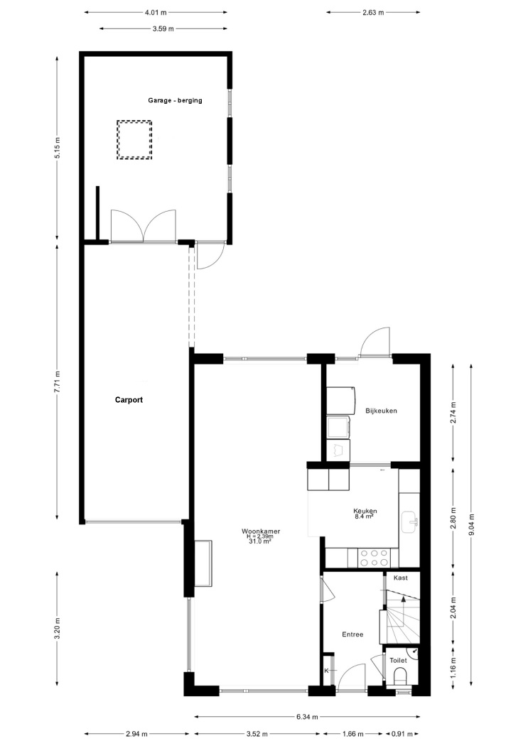 •Parkeren op eigen terrein met carport, overkapping en ruime berging/garage