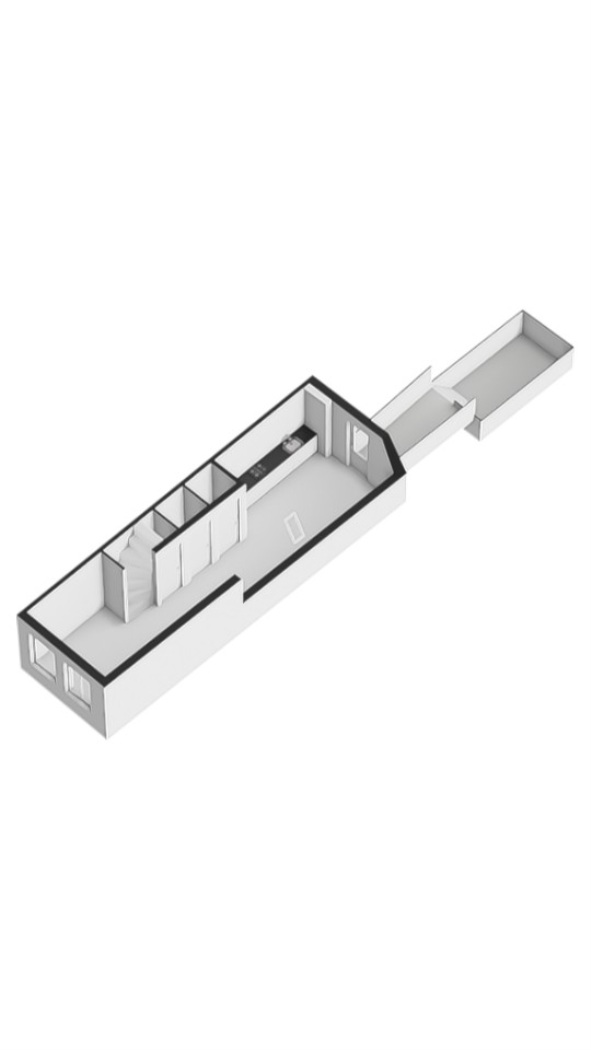 Aan de achterzijde ligt, via een klein niveauverschil, nog een tweede kamer met dakraam – handig als logeer-, werk- of hobbykamer.