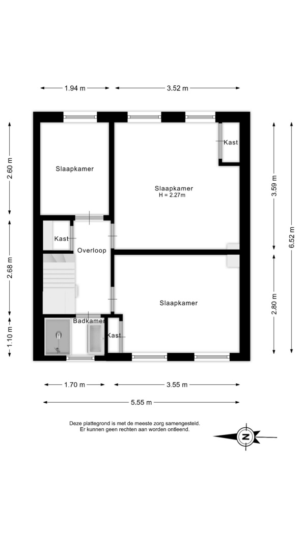 Op de eerste verdieping bevinden zich drie prima bemeten slaapkamers, die flexibel zijn in te delen als slaap-, werk- of hobbykamer. De badkamer is voorzien van een douche en wastafel en biedt een goede basis voor vernieuwing naar eigen wens.